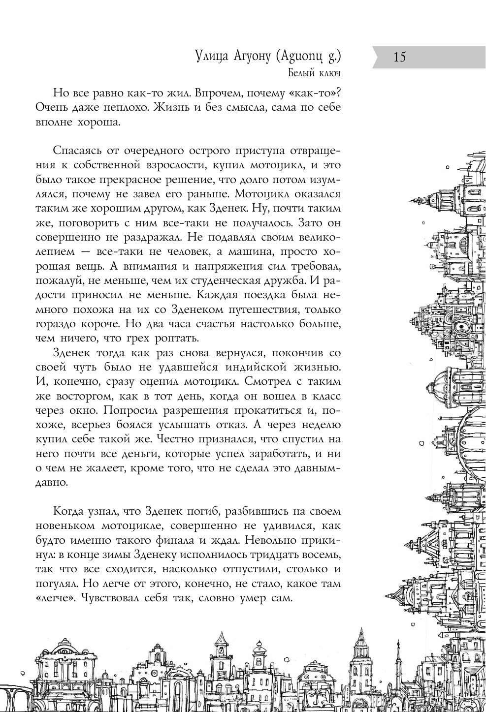 Имя Макса Фрая уже известно всем ценителям хорошей литературы, а «Сказки старого Вильнюса» — один из самых известных и ожидаемых циклов современного фэнтезийного мира. Эта книга — подарочное издание, в котором написанные от руки авторские комментарии и эксклюзивные фотографии Вильнюса, сделаны лично автором. «В Старом городе Вильнюса, как выяснилось, сто сорок семь улиц, переулков, площадей, рынков и мостов; зная характер нашего города, мы не сомневаемся, что это число еще не раз изменится, здесь у нас чуть ли не каждый день что-нибудь появляется и исчезает, а всем кажется, всегда так и было — это одно из правил нашей тайной повседневной игры…»