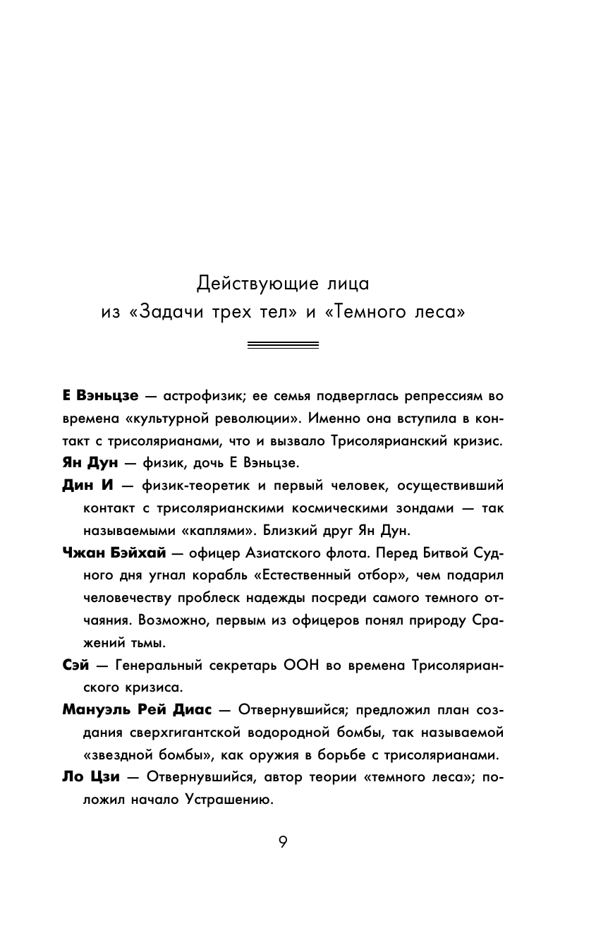 Прошло 50 лет после Битвы Судного Дня и конца Эры Устрашения. Противостояние Земли и Трисоляриса не окончено. Но над человечеством нависла еще более грозная опасность — земные сигналы могут привлечь внимание других высокоразвитых обитателей космоса. А разумные виды в этом темном лесу стремятся уничтожать конкурентов. Чэн Синь, космический инженер из начала 21 века, выходит из анабиоза. Ее знание давно позабытых программ периода Кризиса Трисоляриса может нарушить хрупкий баланс перемирия.