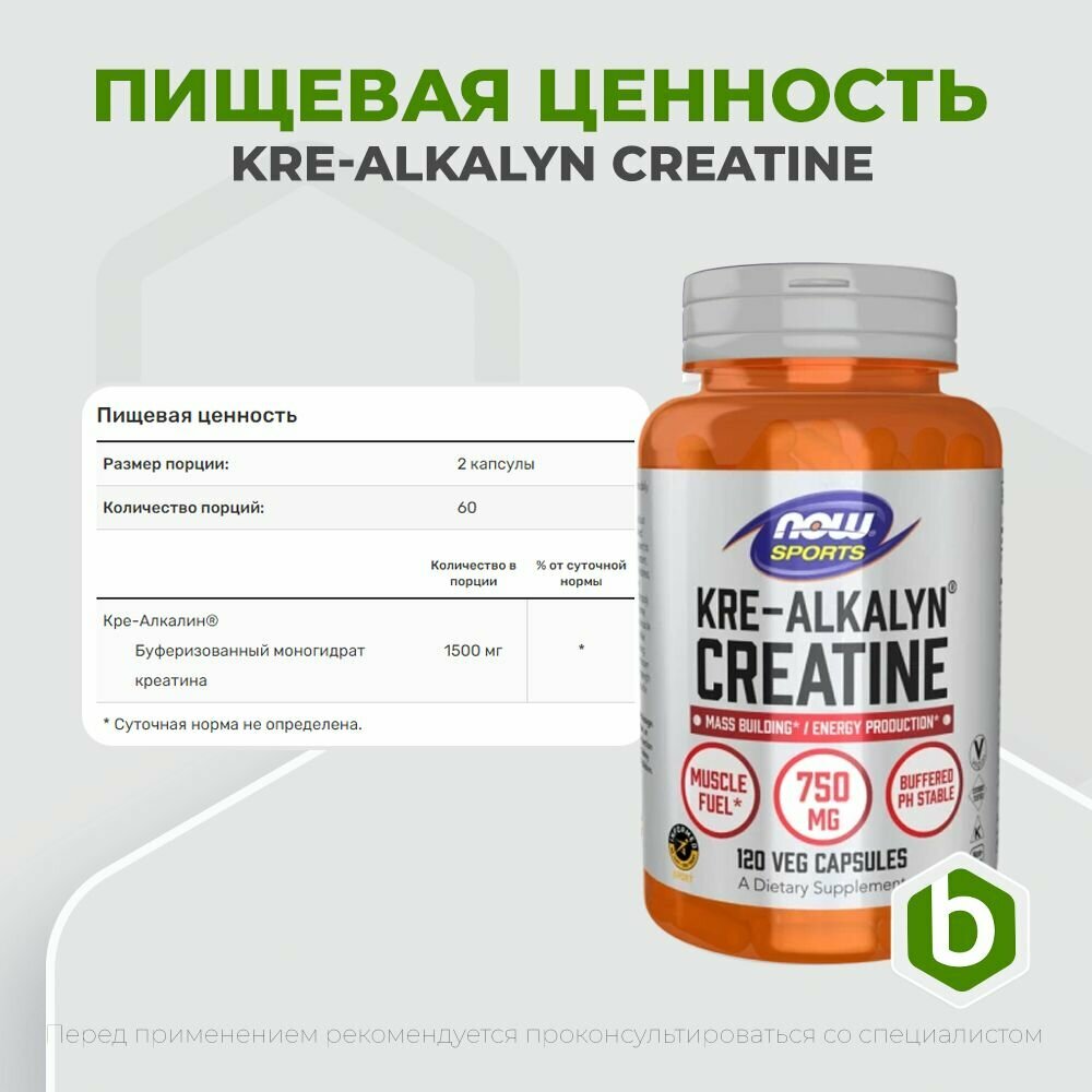 Кре-алкалин креатин Now/Нау капсулы 902мг 120шт NOW Foods (2983848) (размер: без размера)