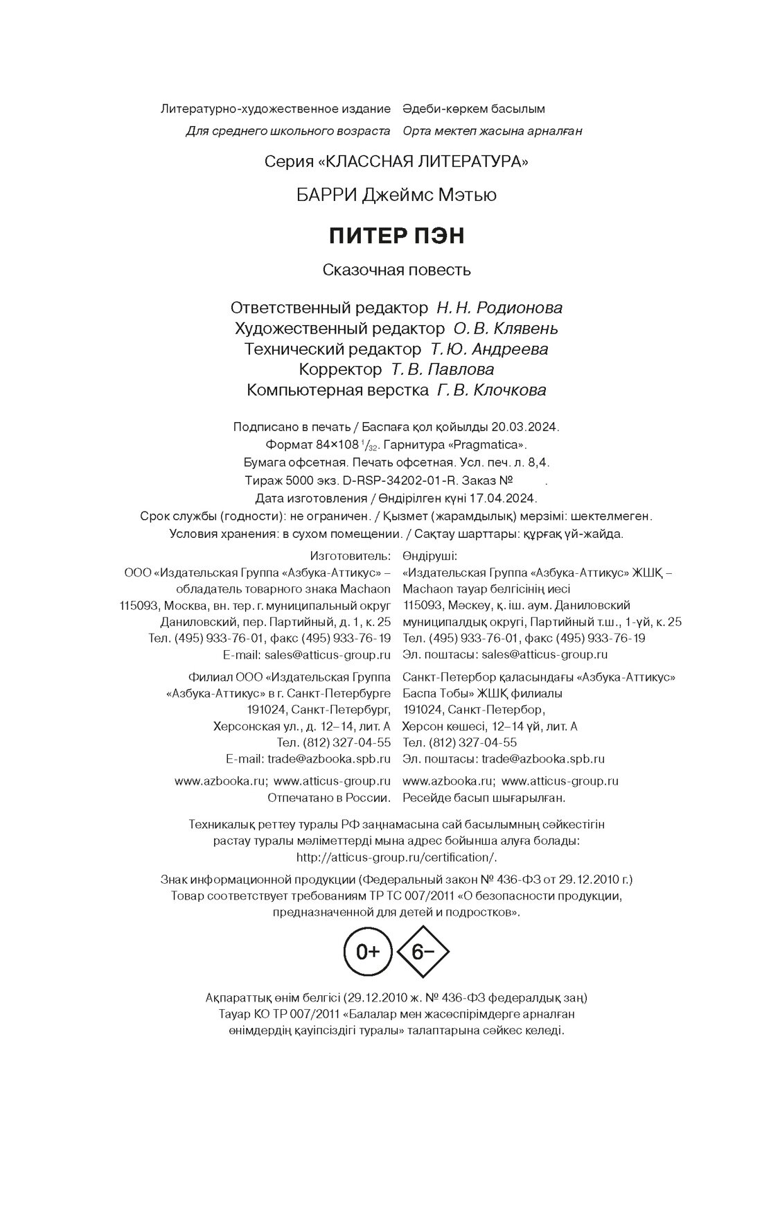 На сегодняшний день товар «Книга: Питер Пэн. Сказочная повесть (Барри Джеймс Мэтью); Махаон Издательство, 2024» можно купить с кешбеком в 4 магазинах: book24, Буквоед, Читай-город, Яндекс.Маркет