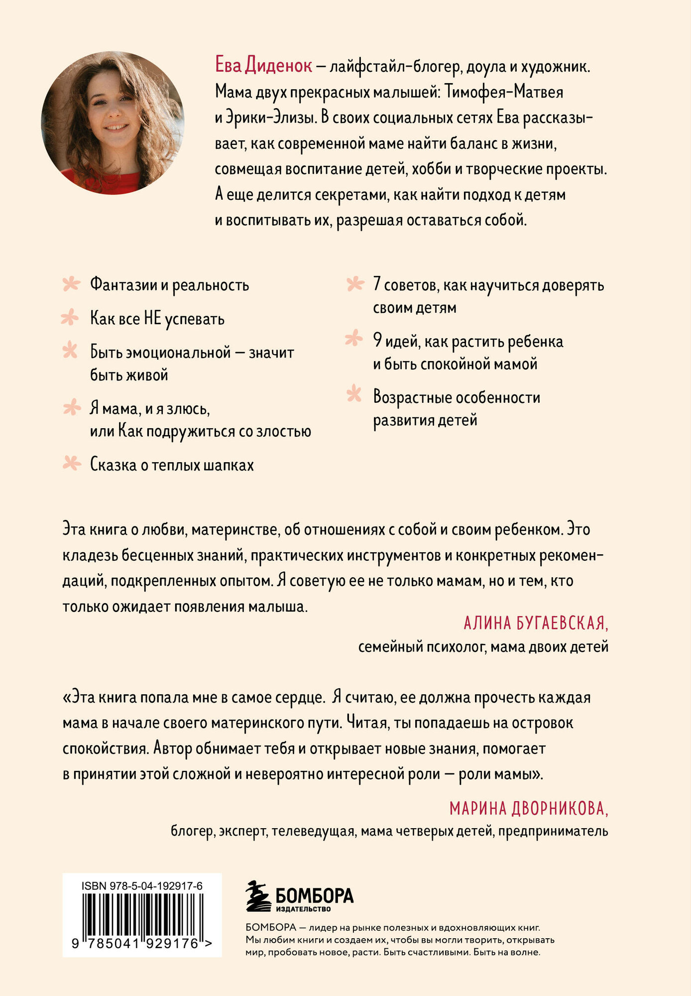 Тысячи молодых мам и девушек, готовящихся к рождению ребенка, задают вопросы Еве Диденок, лайфстайл блогеру и маме двоих детей. Для них она и написала эту книгу. В ней она поделится, как справляться со страхами и раздражением, не распыляться на несущественное, и еще раз напомнит о любви к себе. Ведь счастливая мама — счастливый малыш. Поэтому сначала обними себя, а потом ребенка, и ты увидишь, сколько счастья, внутренних сил и тепла может принести материнство.