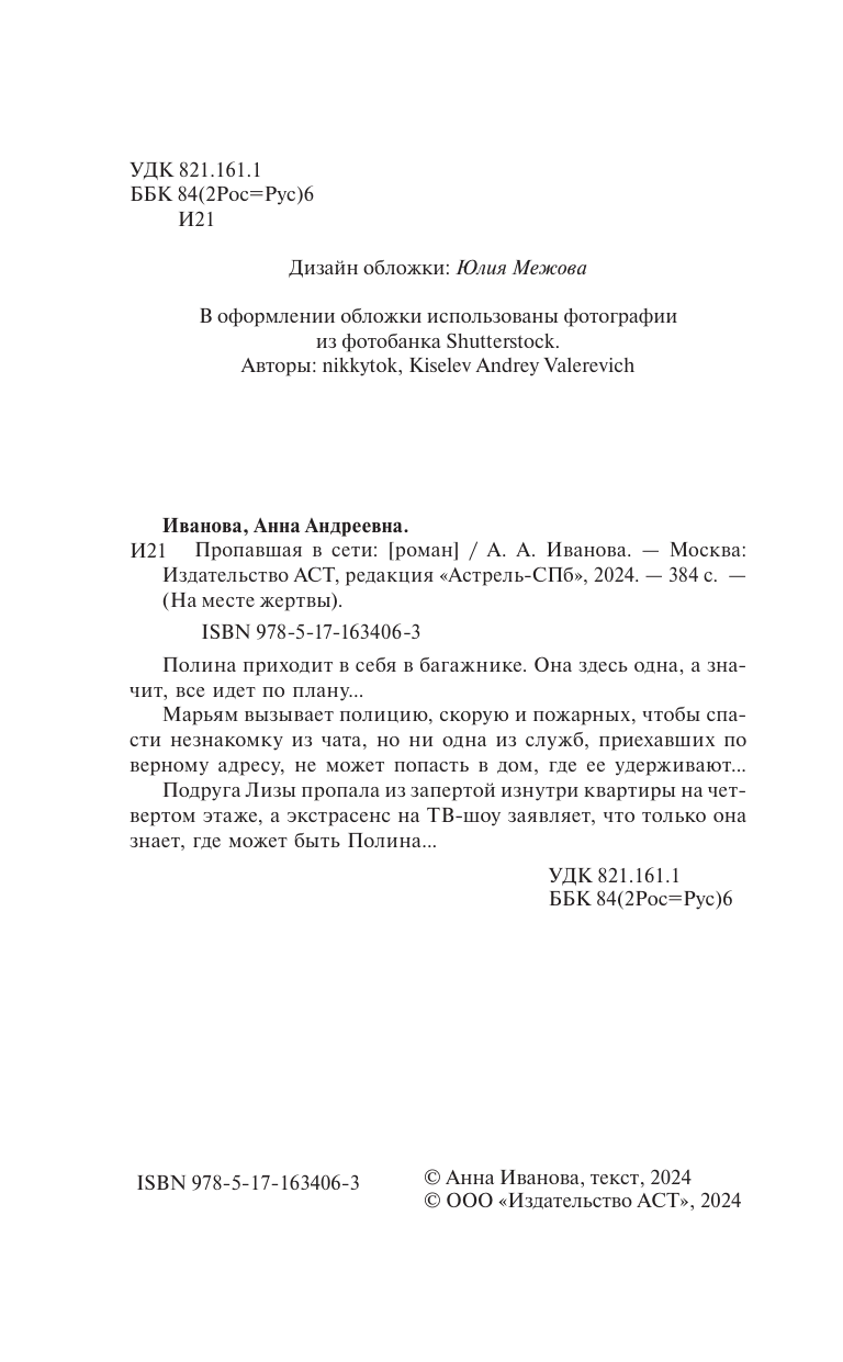 Книга: Пропавшая в сети (Анна Иванова); Издательство АСТ, 2024