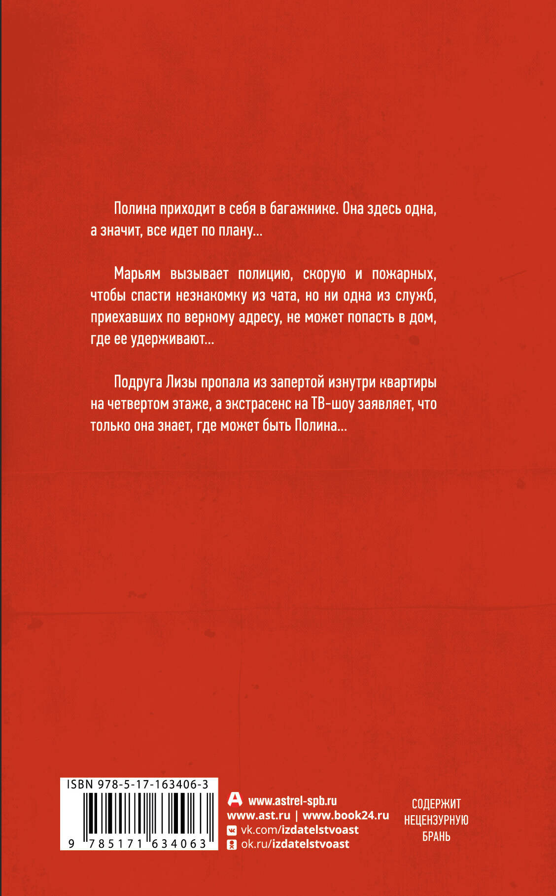 Полина приходит в себя в багажнике. Она здесь одна, а значит, все идет по плану... Марьям вызывает полицию, скорую и пожарных, чтобы спасти незнакомку из чата, но ни одна из служб, приехавших по верному адресу, не может попасть в дом, где ее удерживают... Подруга Лизы пропала из запертой изнутри квартиры на четвертом этаже, а экстрасенс на ТВ-шоу заявляет, что только она знает, где может быть Полина...