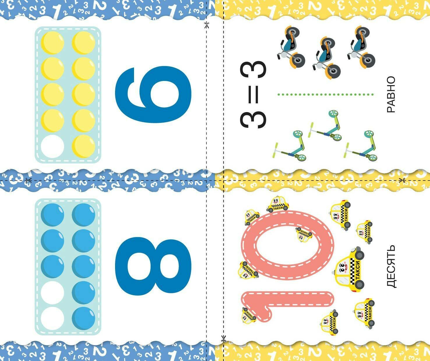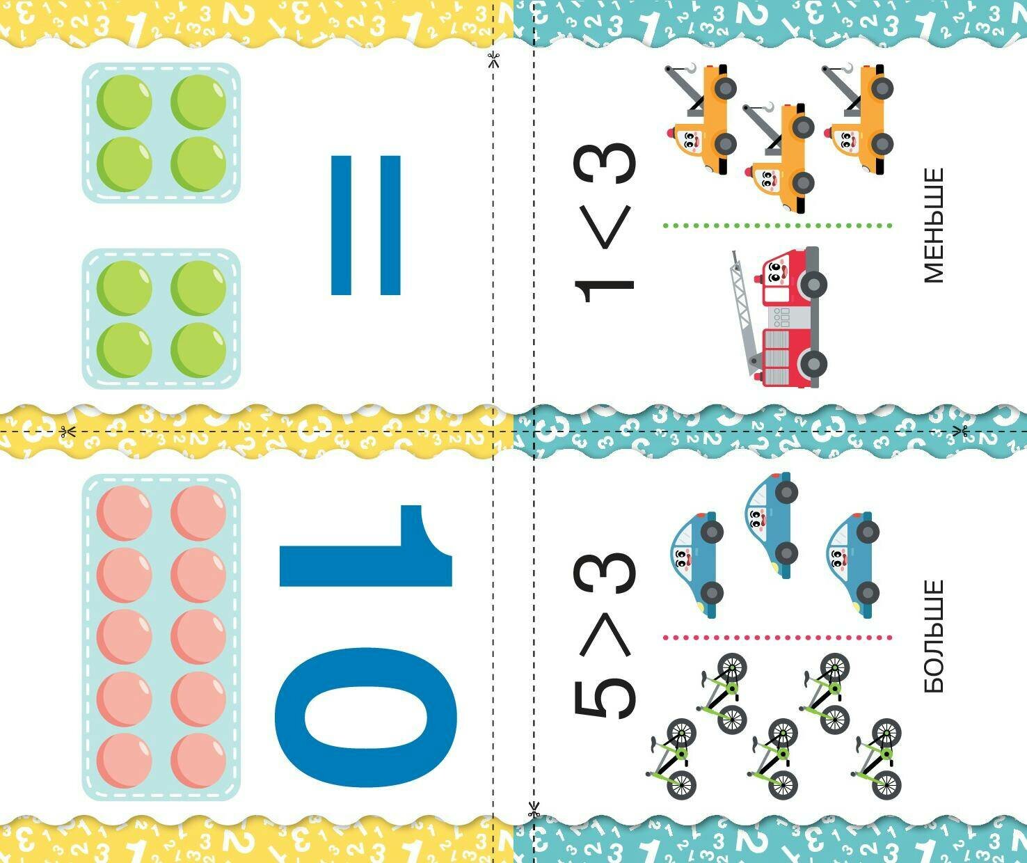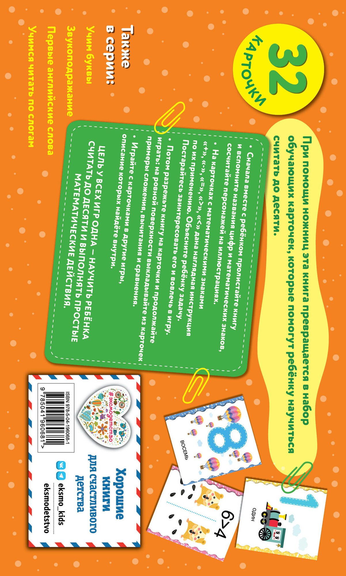 Это незаменимое пособие для детей дошкольного возраста поможет ребёнку научиться считать. При помощи ножниц книга превращается в комплект из 32 двусторонних обучающих карточек. Назовите цифру, изображенную на карточке, и вместе с ребёнком сосчитайте предметы, которые она обозначает. На карточках с арифметическими знаками наглядная инструкция по их применению, которую можно использовать, как памятку. Выкладывая карточки на ровной поверхности, можно выполнять действия сложения, вычитания, сравнения. Книга поможет дошкольнику сделать первые шаги в освоении математики, развить внимание, память, логическое мышление, эстетическое восприятие, чтобы стать лучшим среди своих сверстников при поступлении в школу.