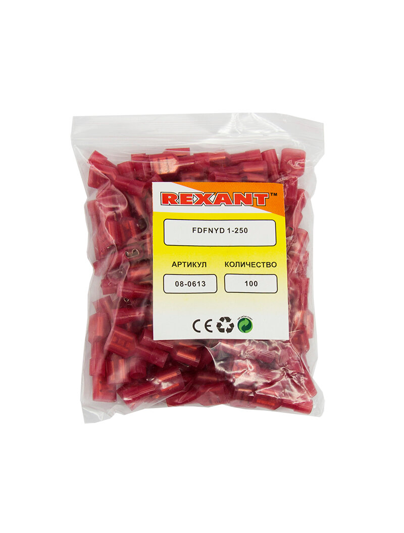 Клемма Rexant плоская полностью изолированная в нейлоне РПи-м(н) 1.5-(6.3)/РпИм-н 125-7-08 гнездо 6.6 мм 0.5-1.5 мм2 красный 08-0613