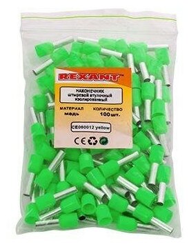 Наконечник Rexant штыревой втулочный изолированный F-12 мм 6 мм2 (НШВи 6.0-12 / Е 60-12/E6012) зеленый 08-0823