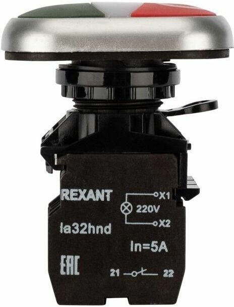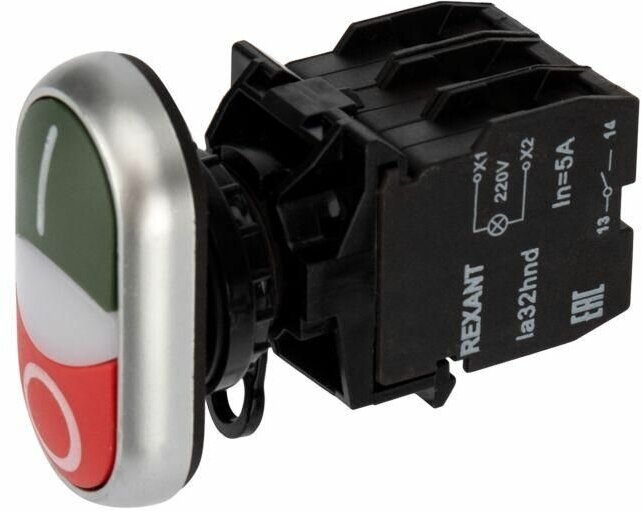 Кнопка Rexant LA32 красно-зеленая «Пуск-Стоп» с подсветкой NO+NC 36-5542