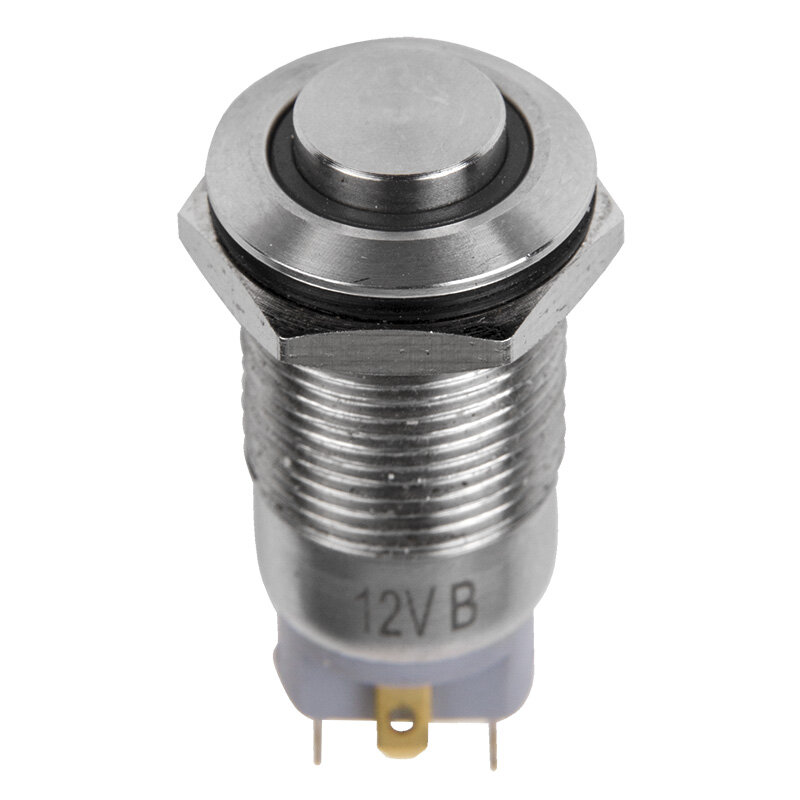 Антивандальная кнопка REXANT ø12, 12в, led, без фиксации, 4с, off-(on), красная (a-12-c2) предназначена для коммутации электрических цепей путем включения-выключения питающего провода. Такие кнопки применяются в местах, где существует большой риск их повреждения (на различных производственных линиях, в лифтовых кабинах, около входной двери и т.д.). Главными отличительными особенностями антивандальной кнопки являются металлическое исполнение и неуязвимость контактной группы, что обеспечит ей долговечное функционирование. Изделие состоит из двух основных частей - лицевой части (головки) и контактной, и имеет пружинный возвратный механизм. Монтаж осуществляется без применения винтов на плоских панелях толщиной от 0.5мм до 3мм. Подключение проводов осуществляется с помощью пайки.