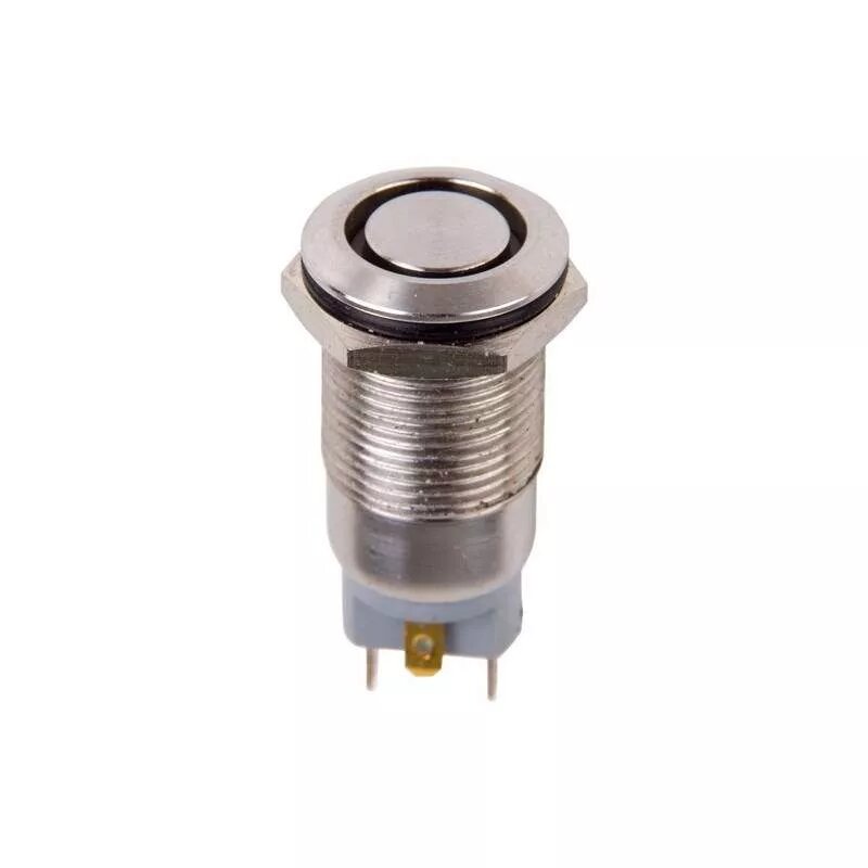 Кнопка антивандальная Ø12 36В(LED) Б/Фикс (4с) OFF-(ON) синяя (A-12-C2) REXANT предназначена для коммутации электрических цепей, путем включения-выключения питающего провода. Такие кнопки применяются в местах, где существует большой риск их повреждения (на различных производственных линиях, в лифтовых кабинах, около входной двери и т.д.). Главными отличительными особенностями антивандальной кнопки являются металлическое исполнение и неуязвимость контактной группы, что обеспечит ей долговечное функционирование. Изделие состоит из двух основных частей - лицевой части (головки) и контактной, и имеет пружинный возвратный механизм. Монтаж осуществляется без применения винтов на плоских панелях толщиной от 0.5мм до 3мм. Подключение проводов осуществляется с помощью винтовых зажимов.