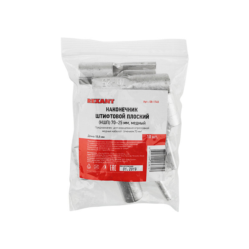 Наконечник Rexant штифтовой плоский кабельный (НШП) 70-25 08-1745