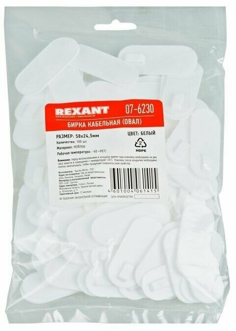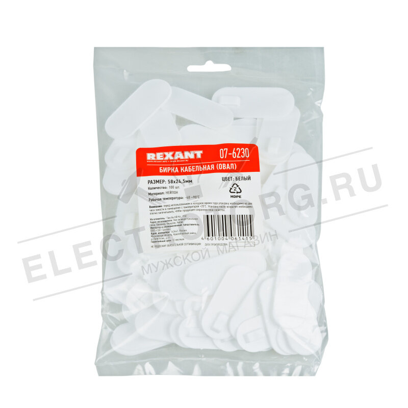Бирка Rexant кабельная «Овал» белая 07-6230
