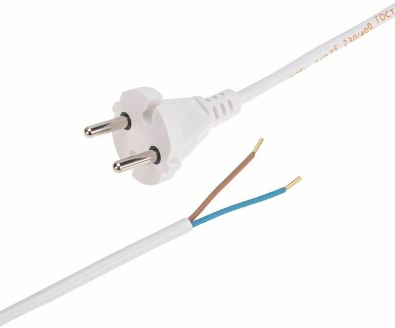 Кабель электрический Rexant с вилкой ПВС 2х075 мм2 2м (белый) 11-1306