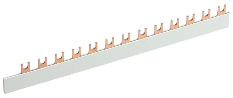 Соединительная шина типа FORK вилка служит для безопасного и комфортного присоединения таких групп приборов, как: автоматические выключатели, выключатели нагрузки, дифференциальные автоматы и выключатели. Шина выполнена из высококачественных медных пластин, помещенных в корпус из диэлектрического материала, не поддерживающего горение.
