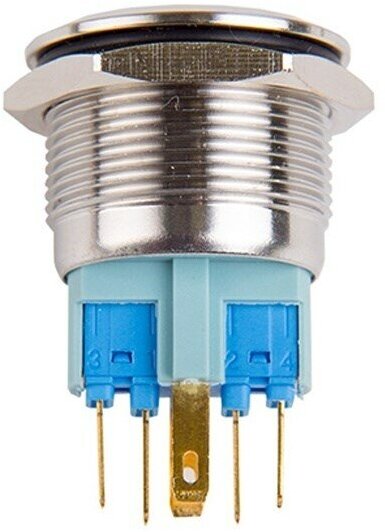 Антивандальная кнопка REXANT ø22, 12в, led, без фиксации, 5с, off-(on)/on-(off), красная подсветка предназначена для коммутации электрических цепей путем включения-выключения питающего провода. Металлические кнопки применяются в местах, где существует большой риск их повреждения (на различных производственных линиях, в лифтовых кабинах, около входной двери и т. д.), а также для декоративного оформления панелей управления. Главными отличительными особенностями такой кнопки являются металлическое исполнение и неуязвимость контактной группы, что обеспечит ей долговечное функционирование. Изделие состоит из двух основных частей – лицевой части (головки) и контактной, и имеет пружинный возвратный механизм. Монтаж осуществляется без применения винтов на плоских панелях толщиной от 0.5 до 10 мм. Подключение проводов осуществляется с помощью винтовых зажимов, пайки или разъемом.