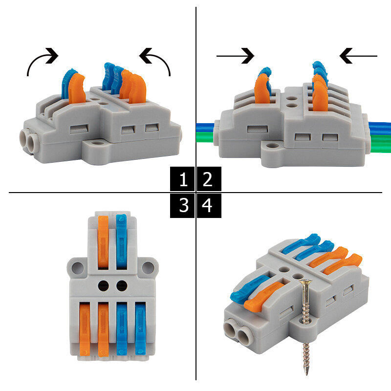 Многоразовые соединительные клеммы REXANT предназначены для соединения медных одножильных и многожильных зачищенных проводников тонкого сечения. Контакт осуществляется путем зажима проводника пластиной.