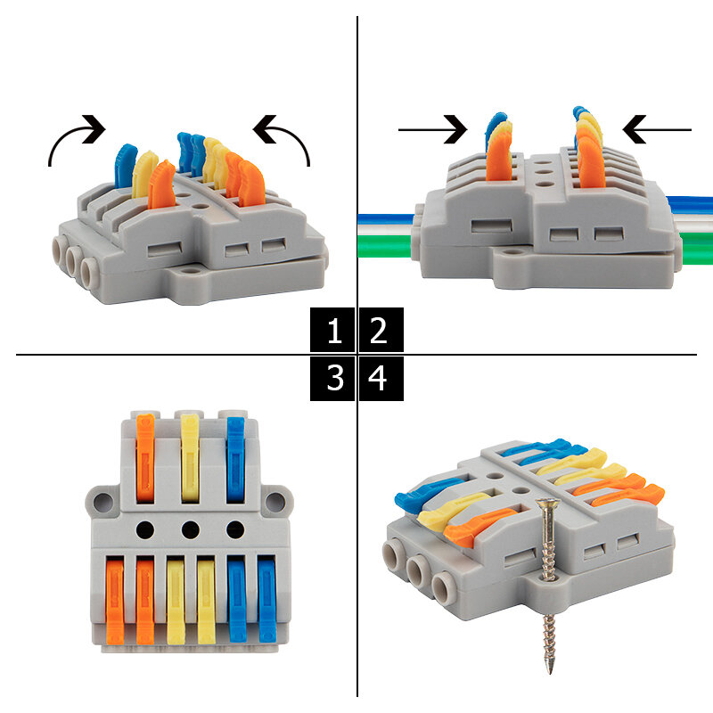 Многоразовые соединительные клеммы REXANT предназначены для соединения медных одножильных и многожильных зачищенных проводников тонкого сечения. Контакт осуществляется путем зажима проводника пластиной.