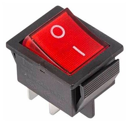 Выключатель клавишный 250V 16А (4с) ON-OFF красный с подсветкой предназначен для коммутации электрических цепей переменного тока напряжением до 250В. Клавишные (Рокерные) выключатели применяются в качестве комплектующих изделий различного электрооборудования (в сетевых фильтрах и удлинителях, аудио-оборудовании, блоках питания, электроустановках на различных производствах и многих других местах). Такой клавишный переключатель имеет два положения. Принцип действия основан на перемещении клавиши в одну из позиций. Для переключения в нужное положение требуется приложить некоторые усилия на клавишу. Монтаж осуществляется без применения винтов на плоских панелях толщиной от 0.8мм до 3мм. Подключение контактов осуществляется плоской клеммой 6.6мм либо с помощью пайки.