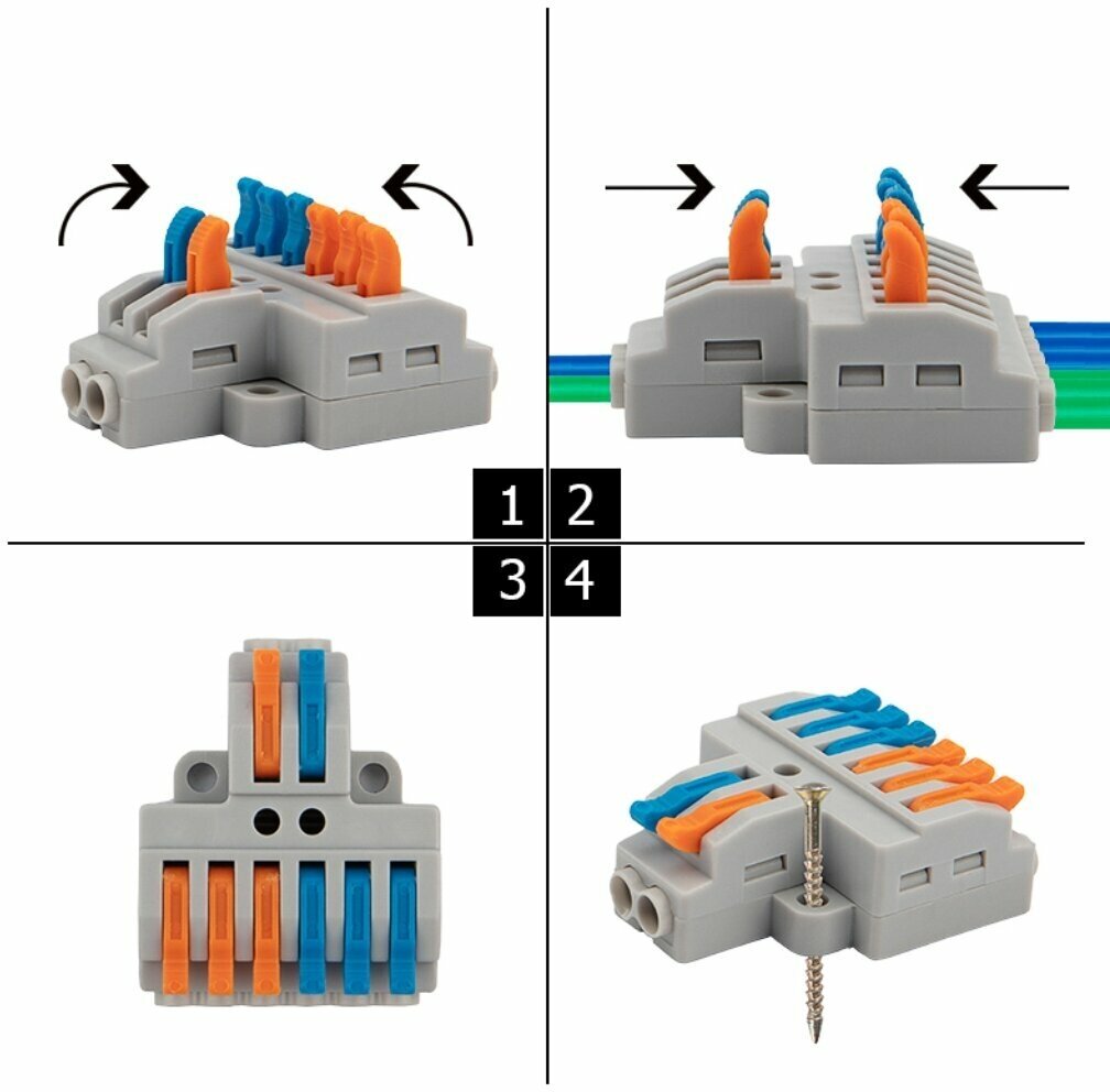 Разветвительная клемма REXANT с рычажком 2-6 0,08-4 мм с монтажной площадкой предназначена для соединения медных одножильных и многожильных зачищенных проводников тонкого сечения. Специальное технологическое отверстие на корпусе клеммы предназначено для проверки соединения тестером-пробником или щупом мультиметра.