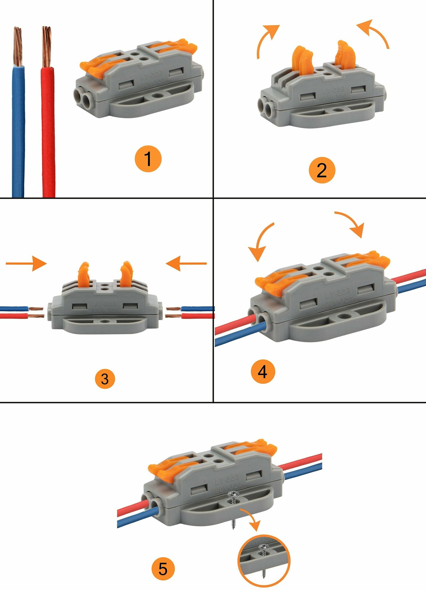 Клемма Rexant СМК 222-422P проходная 2 полюса с монтажной площадкой 07-6262-5