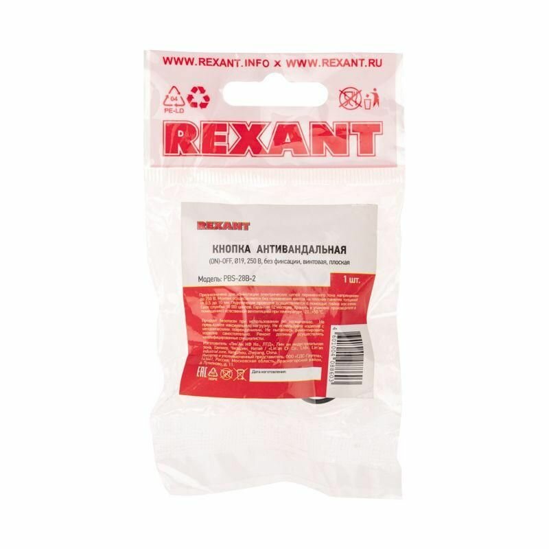 Кнопка Rexant антивандальная диам. 19 Б/Фикс (2с винт) OFF-(ON) сфера (PBS-28В A19-A2) 06-0357-B