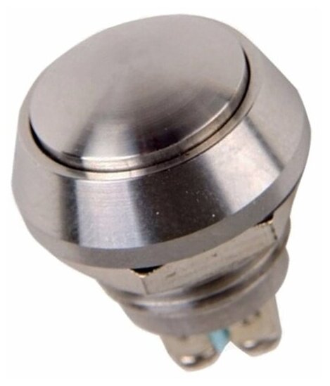 Антивандальная кнопка REXANT ø12, без фиксации, 2с винт, off-(on), сфера (a12-a3) предназначена для коммутации электрических цепей напряжением до 250В путем включения-выключения питающего провода. Металлические кнопки применяются в местах, где существует большой риск их повреждения (на различных производственных линиях, в лифтовых кабинах, около входной двери и т.д.), а также для декоративного оформления панелей управления. Главными отличительными особенностями такой кнопки являются металлическое исполнение и неуязвимость контактной группы, что обеспечит ей долговечное функционирование. Изделие состоит из двух основных частей - лицевой части (головки) и контактной, и имеет пружинный возвратный механизм. Монтаж осуществляется без применения винтов на плоских панелях толщиной от 0.5мм до 5мм. Подключение проводов осуществляется с помощью винтовых зажимов, пайки или разъемом.