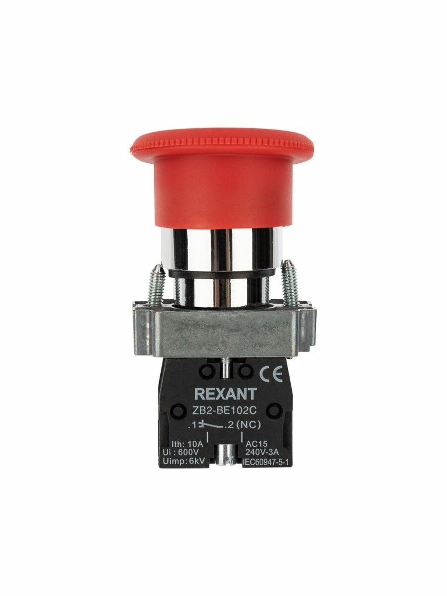 Кнопка Rexant XB2-BS поворотная красная грибок NC 36-5544