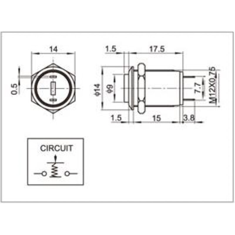Кнопка Rexant антивандальная диам. 12 Б/Фикс (2с) OFF-(ON) выпуклая (A12-B2) 36-3151