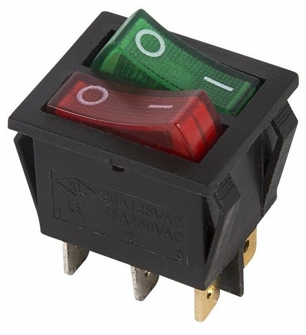 Выключатель Rexant клавишный 250V 15А (6с) ON-OFF красный/зеленый с подсветкой ДВОЙНОЙ (RWB-511) 36-2450