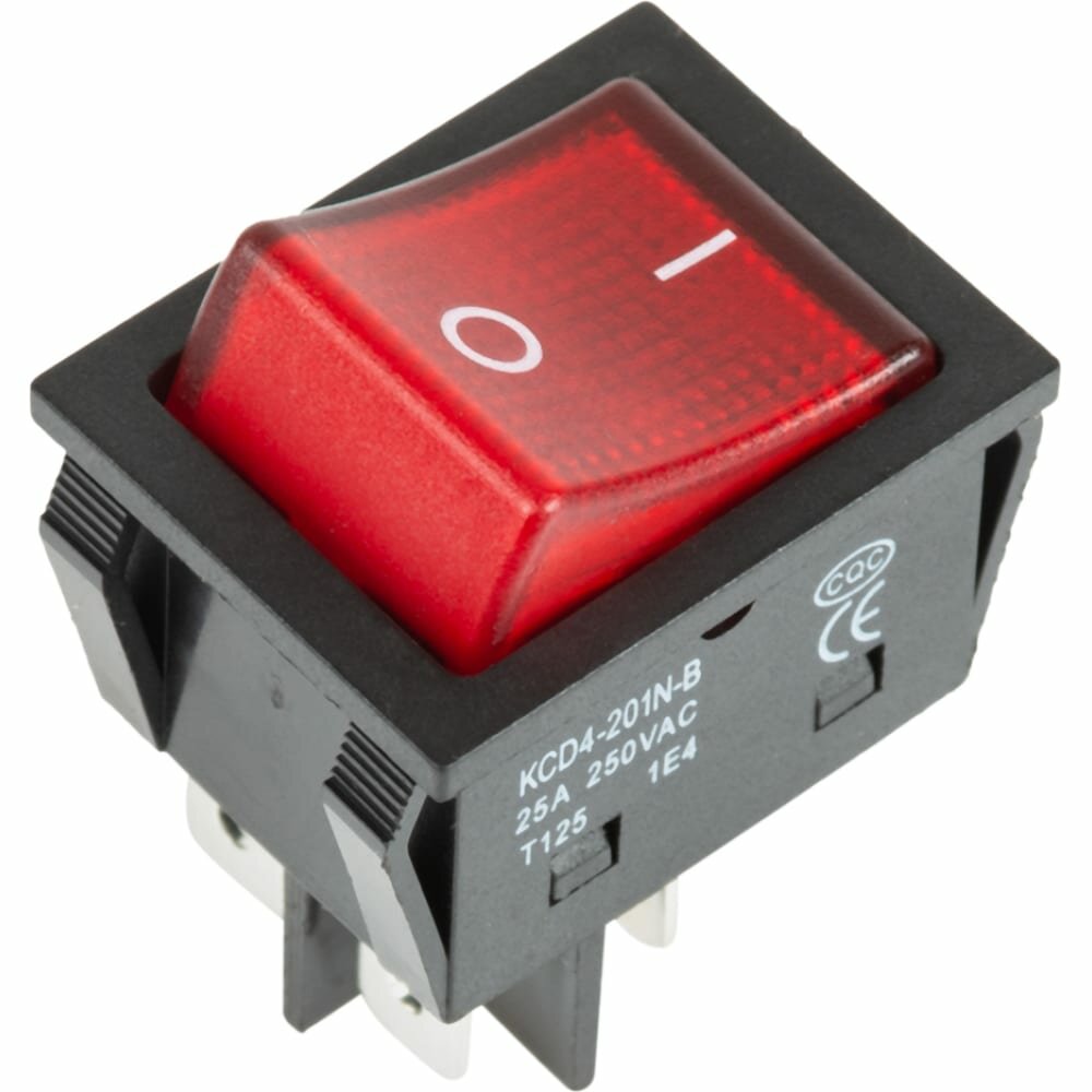 Выключатель Rexant клавишный 250V 25А (4с) ON-OFF красный с подсветкой (RWB-502) 36-2343