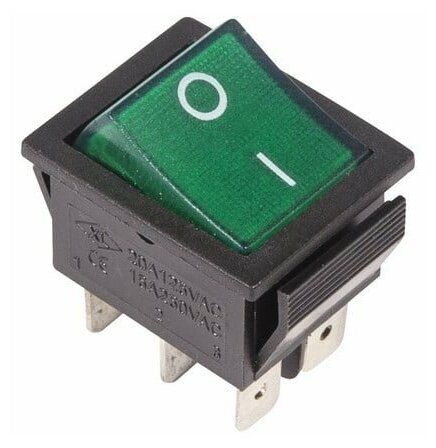 Переключатель Rexant клавишный 250V 15А (6с) ON-ON зеленый с подсветкой (RWB-506 SC-767) 36-2352
