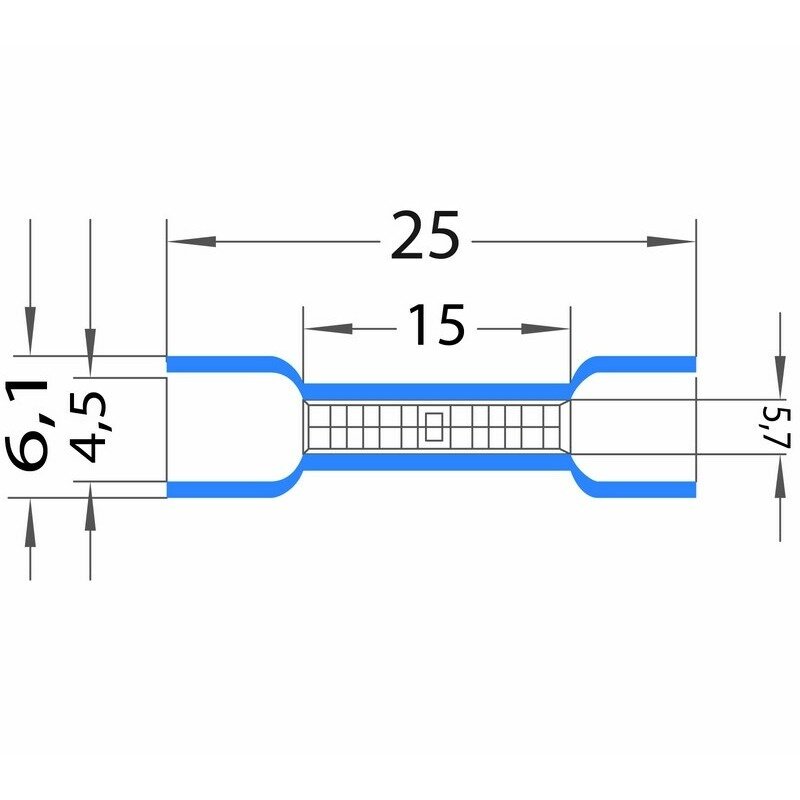 СОЕДИНИТЕЛЬНАЯ ГИЛЬЗА изолированная (СГИ L-26мм) 1.5-2.5мм² (BV2, VB2) синий REXANT предназначена для качественного и быстрого соединения проводов между собой, а также изоляции места их соединения. Такая гильза используется для соединения многожильных медных проводов соответствующего диаметра при монтаже мобильных электрических контактных соединений на подвижном составе (автомобиле-, вагоно-, самолето- и судостроении).