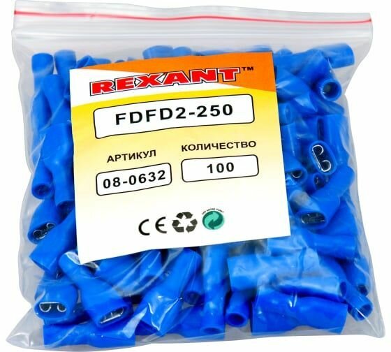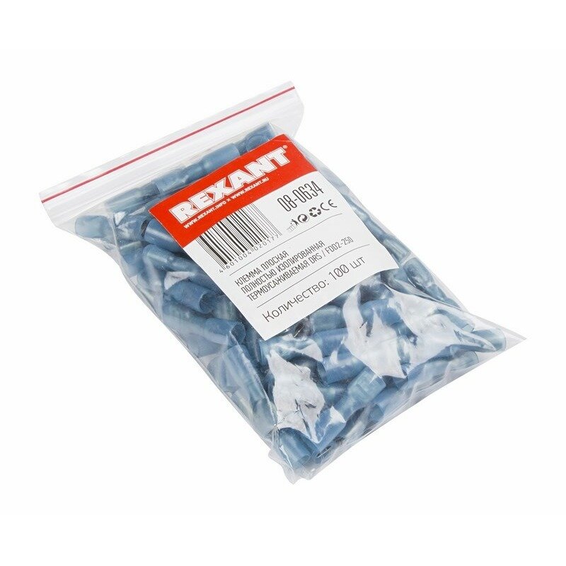 Клемма Rexant плоская полностью изолированная термоусаживаемая РПи-м-т 2.5-(6.3)/РпИм-т 2-7-08 гнездо 6.6 мм 1.5-2.5 мм2 синий 08-0634