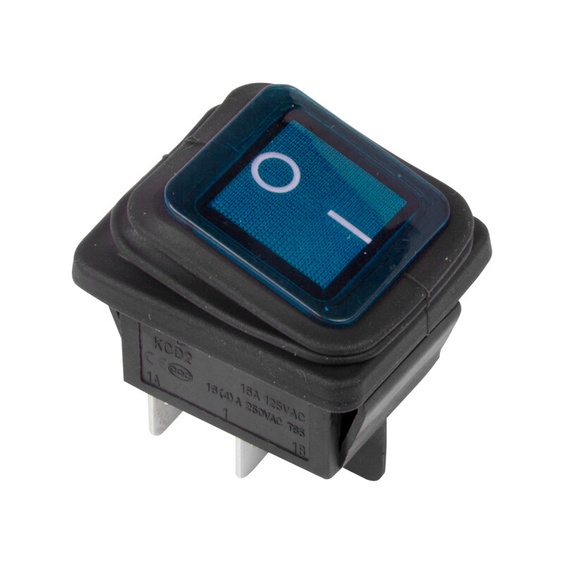 Выключатель Rexant клавишный 250V 15А (4с) ON-OFF синий с подсветкой ВЛАГОЗАЩИТА (RWB-507) 36-2361