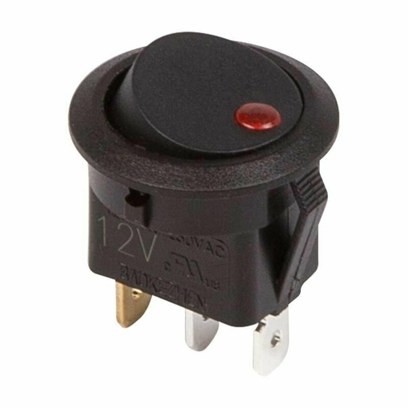 Выключатель клавишный круглый 12V 20А (3с) ON-OFF красный с подсветкой предназначен для коммутации электрических цепей напряжением 12В. Клавишные (Рокерные) выключатели применяются в качестве комплектующих изделий различного электрооборудования (в аудио-оборудовании, блоках питания, электроустановках на различных производствах, автомобилях, и многих других местах). Такой клавишный переключатель имеет два положения. Принцип действия основан на перемещении клавиши в одну из позиций. Для переключения в нужное положение требуется приложить некоторые усилия на клавишу. Монтаж осуществляется без применения винтов на плоских панелях толщиной от 0.8мм до 3мм. Подключение контактов осуществляется плоской клеммой либо с помощью пайки.