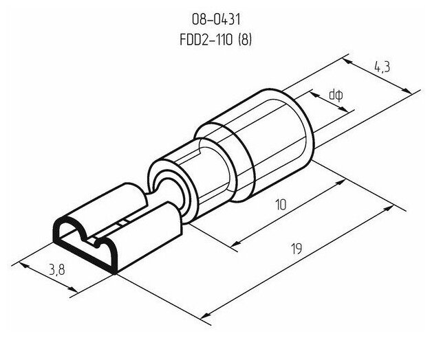 Клемма Rexant плоская изолированная РПи-м 2.5-(2.8)/РпИм 2-250 гнездо 3.8 мм 1.5-2.5 мм2 08-0431