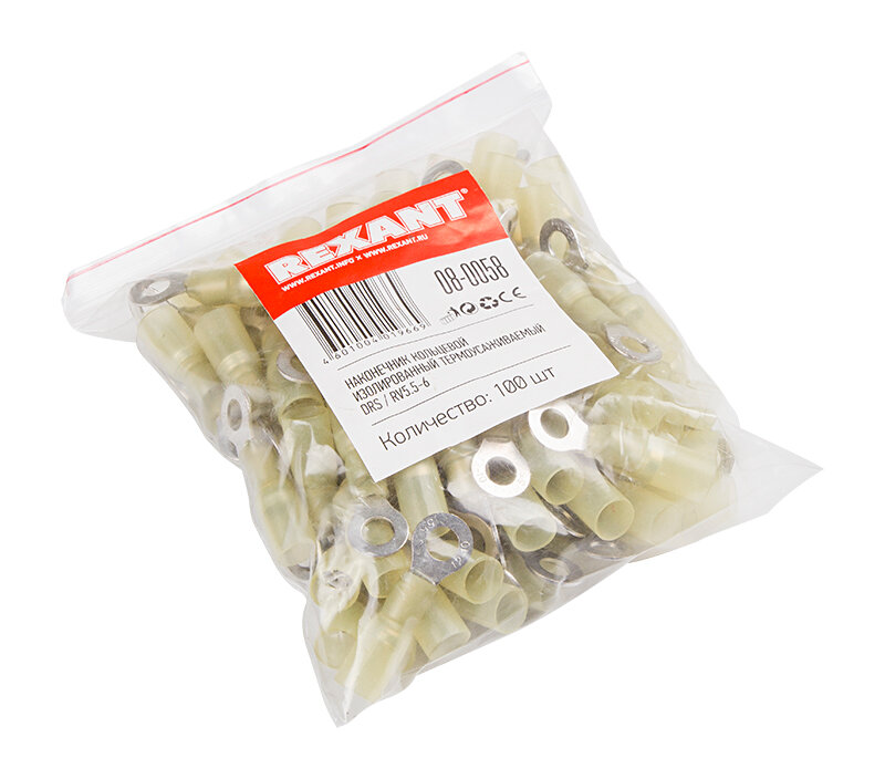 Наконечник Rexant кольцевой изолированный термоусаживаемый диам. 6.5 мм 4-6 мм2 (НКи-т 6.0-6/НКи-т55-6) желтый 08-0058