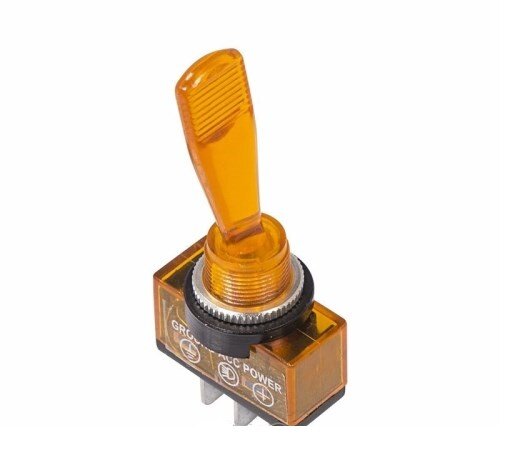 Тумблер 12V 20А (3c) ON-OFF однополюсный с желтой подсветкой (ASW-13D) предназначен для коммутации электрических цепей напряжением 12В. Такая разновидность переключателей применяется на лицевых панелях в качестве комплектующих изделий различного электрооборудования (в измерительных приборах, блоках питания, электроустановках на различных производствах, легковых и грузовых автомобилях, поездах и многих других местах). Отличительной особенностью тумблера является удлиненный (27мм) пластмассовый перекидной переключатель, принцип действия которого основан на его перемещении в одну из позиций.