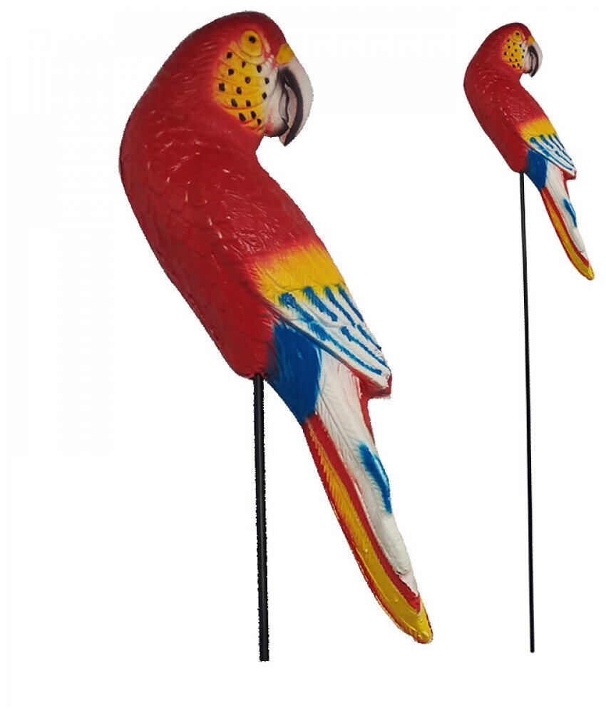 Оживит ландшафтный дизайн, сделает оформление участка или двора интереснее и ярче. Необычный декор выгодно подчеркнёт детали: например, привлечёт внимание к клумбе, водоёму или дереву — просто расположите фигуру рядом с нужным объектом. Используется для украшения сада, лужайки или альпийской горки. Размер: 27 x 8 см; Длина штекера: 60 см; Материал: пластик, металл; Дизайн: Попугай.