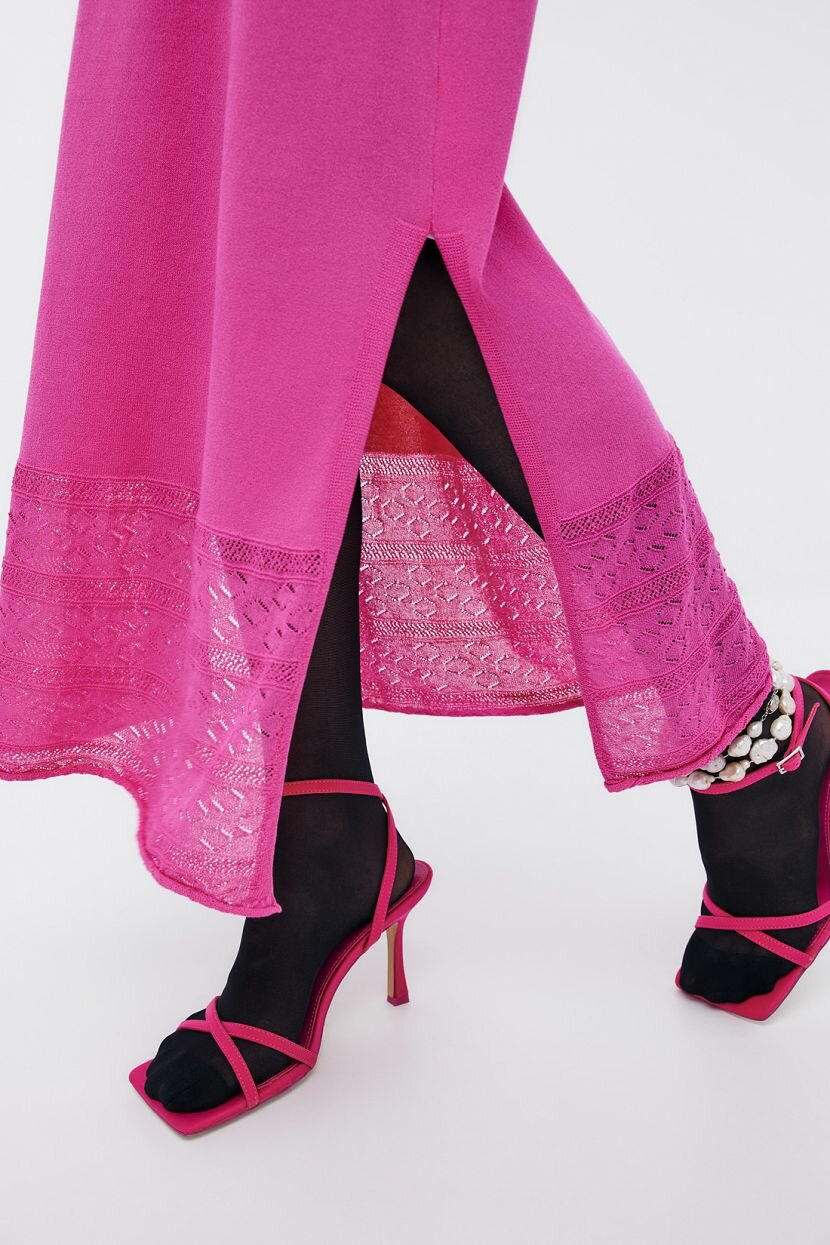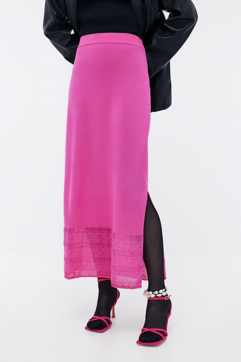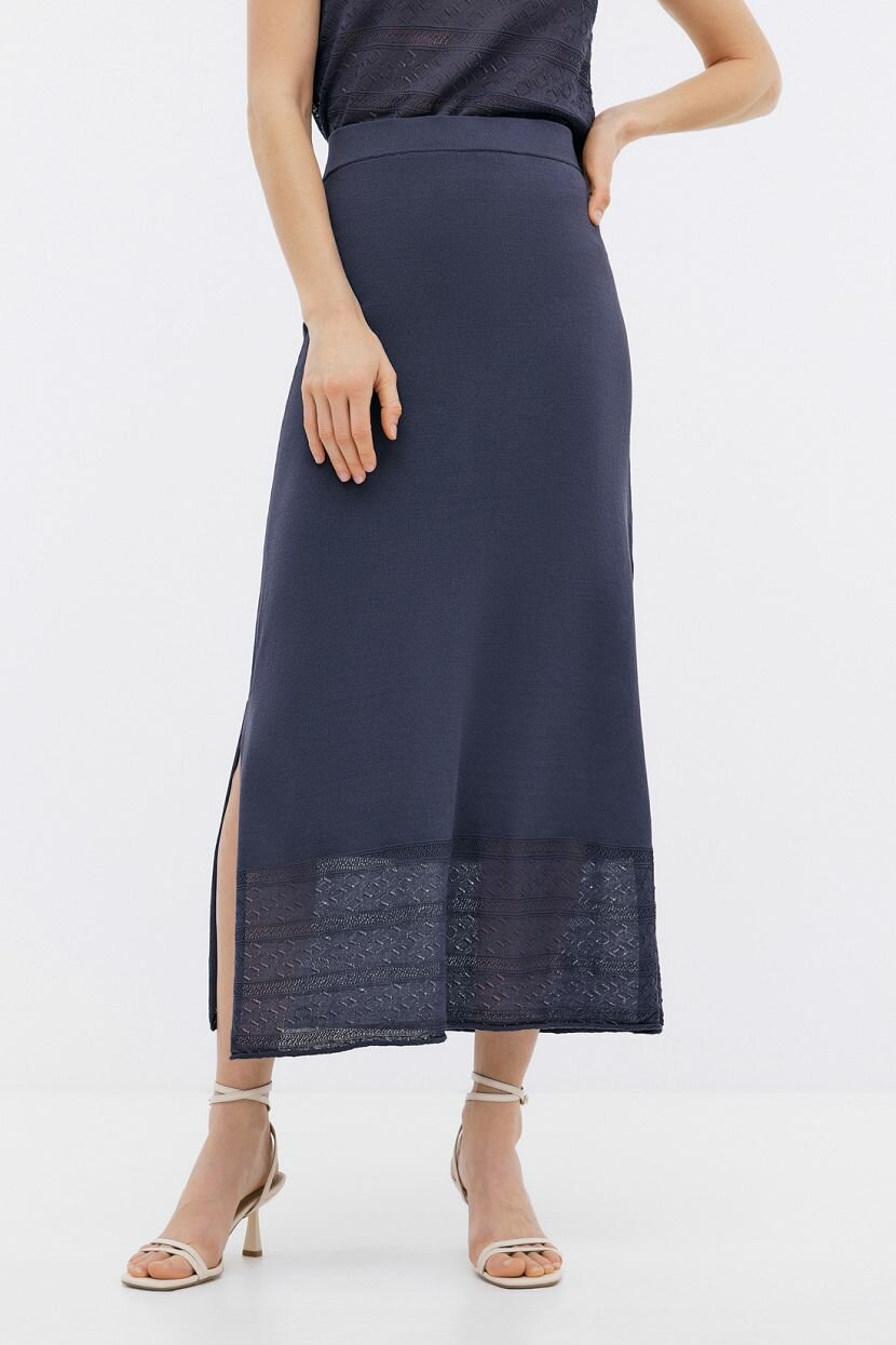 Юбка-миди из вязаного трикотажа - эффектная модель для отпуска и отдыха. Сочетание нескольких узоров в отделке края изделия подражает технике пэчворк, а их ажурная лёгкость как нельзя лучше подходит для жарких летних дней. Модель имеет прямой крой с вырезом сбоку и актуальную миди-длину. Пояс дополнен эластичной вставкой-резинкой. Юбку можно сочетать с лёгкими футболками и блузами, а чтобы создать модный комплект, дополните его парным топом арт. 2624020.Юбка выполнена из шелковистого вязаного трикотажа с натуральной основой. Вискоза комфортна в любую погоду: в одежде из такого материала не бывает жарко или холодно. Добавление полиамида делает трикотаж прочнее, благодаря чему модель дольше сохраняет аккуратный внешний вид.