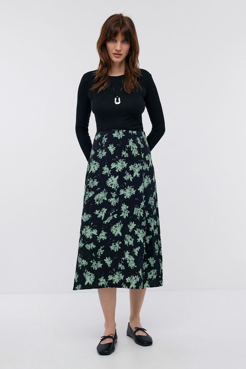 Юбка миди из вискозы с принтом BAON B4724021 для женщин (размер: 44)