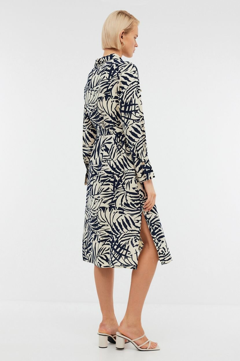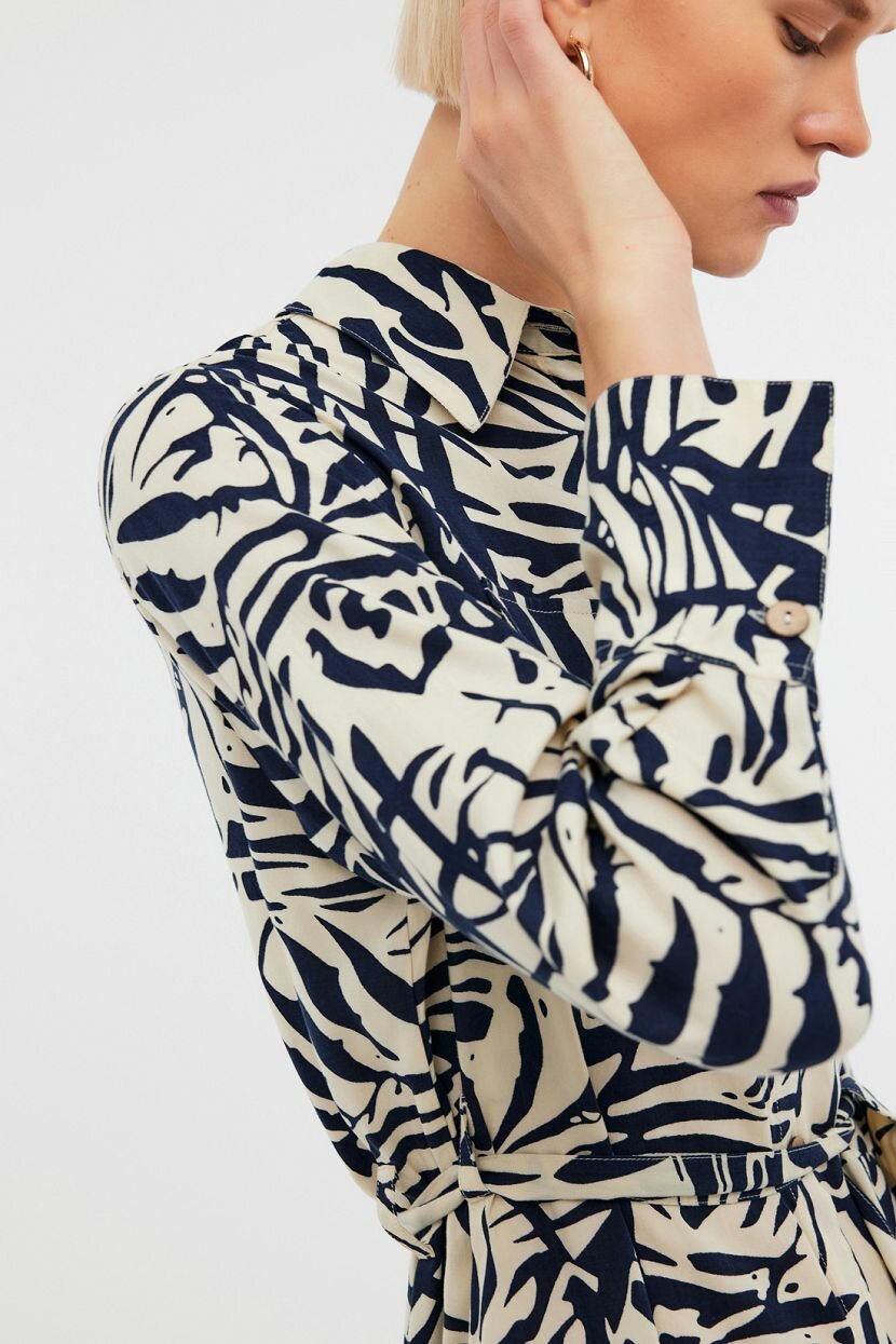 Платье длины миди с анималистичным принтом невероятно комфортно в носке. Оно удобно и дарит свободу движений. Это актуально в повседневном и деловом образе. Это идеальный лук, чтобы чувствовать себя стильно и уверенно в любой ситуации. Можно интегрировать в аутфит в качестве верхней туники. Прямой силуэт красиво садится по фигуре и подчеркивает женственность. Пояс из основной ткани позволяет откорректировать посадку и сделать ее более приталенной. Модель рубашка обладает классическим отложным воротником, который переходит в планку на пуговицах. Декоративные нагрудные клапаны и функциональные разрезы по бокам дополняют изделие. Оно выполнено из премиальной воздушной вискозы. Мягкое дышащее полотно приятно на ощупь и обеспечивает тактильный комфорт.