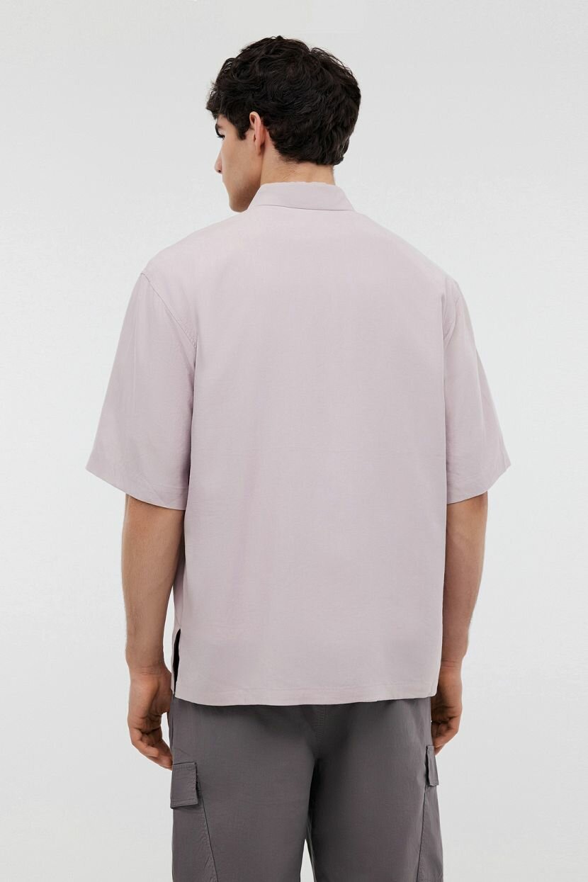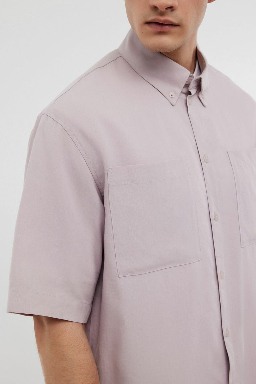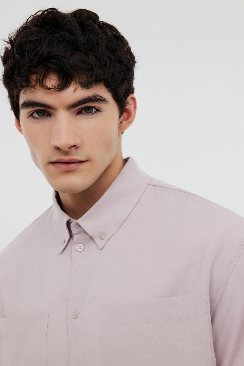 Рубашка полуприталенного классического силуэта в минималистичном дизайне станет комфортным и удобным решением на каждый день. Она уместно смотрится в расслабленных и деловых образах. Нагрудные карманы - функциональный элемент кроя. Компактные разрезы по низу боковых швов придают ношению напуск особый шарм. Изделие дополнено оригинальным воротником типа button-down, который особенно органично выглядит в неформальных аутфитах. Он фиксируется на пуговицы с двух сторон к основному полотну. Модель выполнена из смесового льна с вискозой. Пластичный приятный к телу материал является образцом комфорта и практичности. Сорочка с коротким рукавом - часть лимитированной коллекции WHY NOT? Ее концепция заключается во внедрении элегантных трендов в повседневный гардероб.
