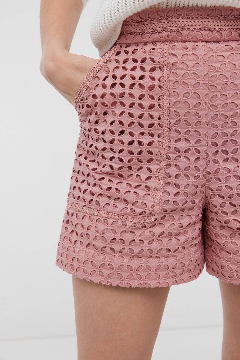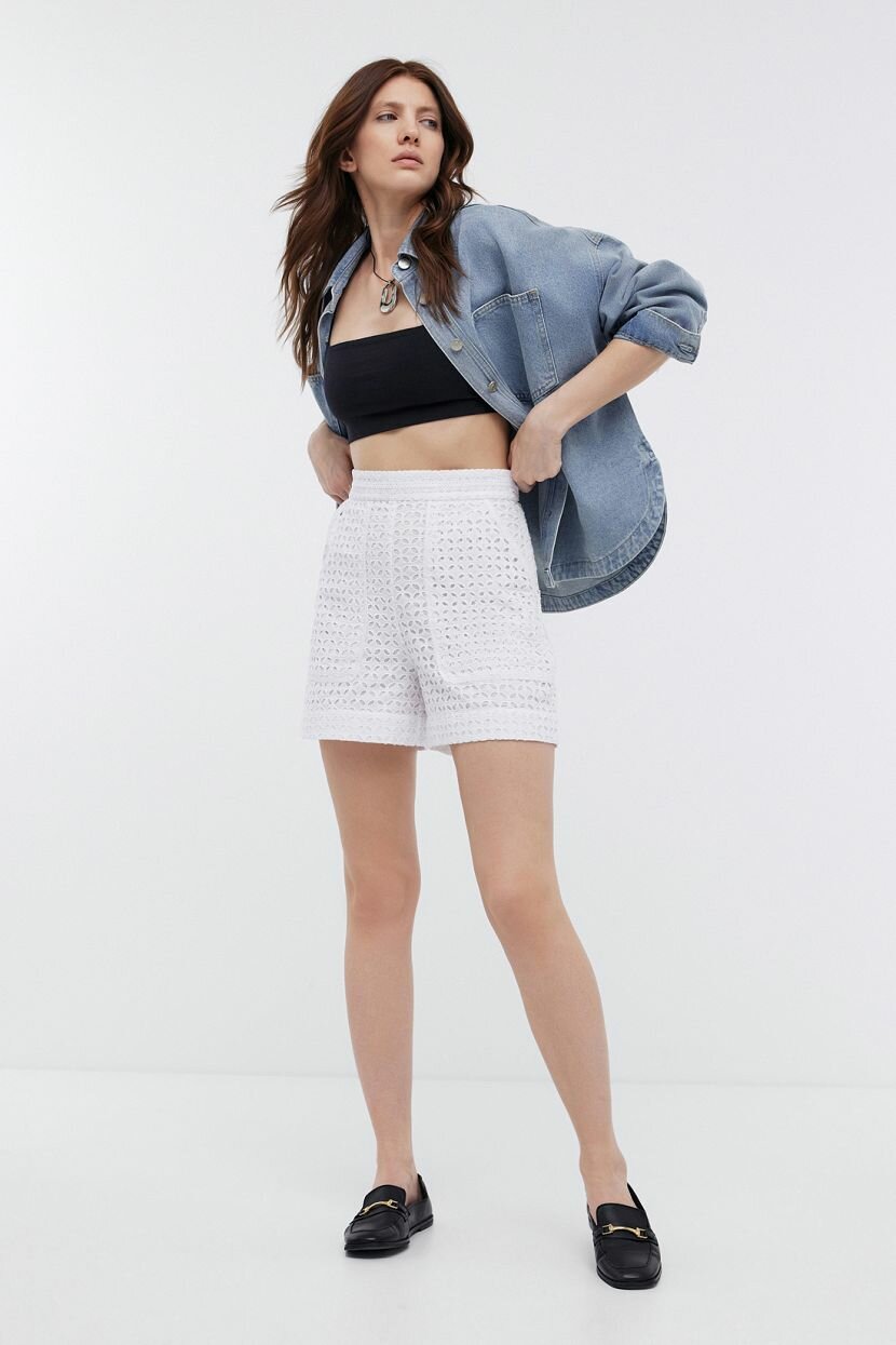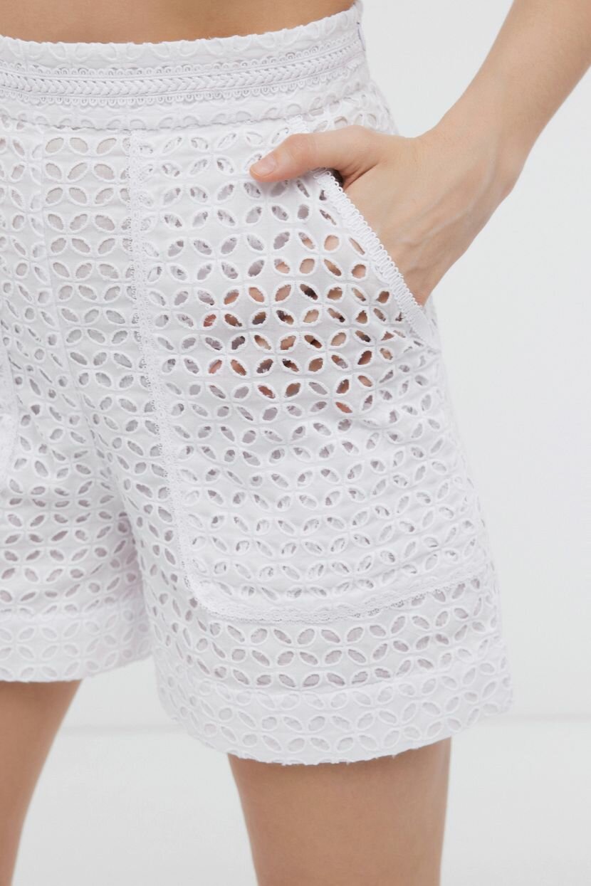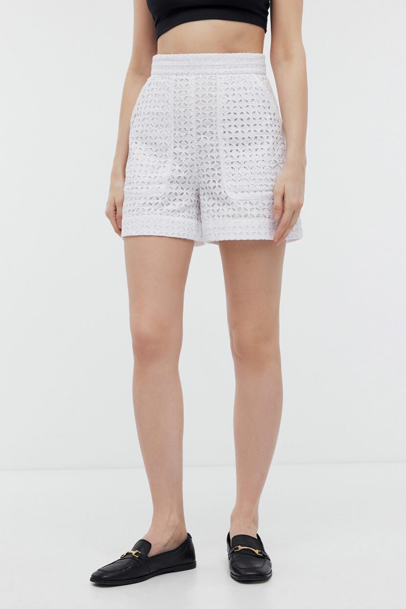 Шорты из хлопкового шитья незаменимы для составления стильных кэжуал аутфитов. Их оптимальная длина и в меру свободный силуэт выглядят удивительно органично и воздушно. Можно создать кокетливый модный образ для офиса и повседневного ношения, совместив с базовыми вещами женского гардероба. В конструкции предусмотрены вместительные накладные карманы для нужных мелочей. Облегченная модель с манжетами-подворотами застегивается на потайную молнию, расположенную в боковом шве. Верхний слой с элегантным узором способен удивить гармоничным орнаментом. Утонченная отделка кружевом придает выразительность и индивидуальность. Фактура однотонного полотна из натурального материала сохраняет форму и не требует специального ухода. Подкладка из батиста обладает дышащими свойствами и приятна на ощупь.