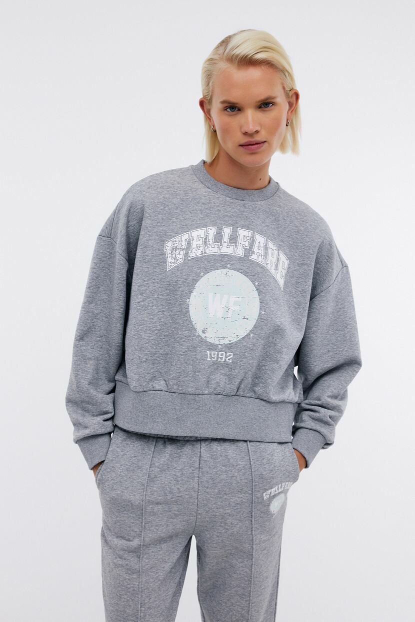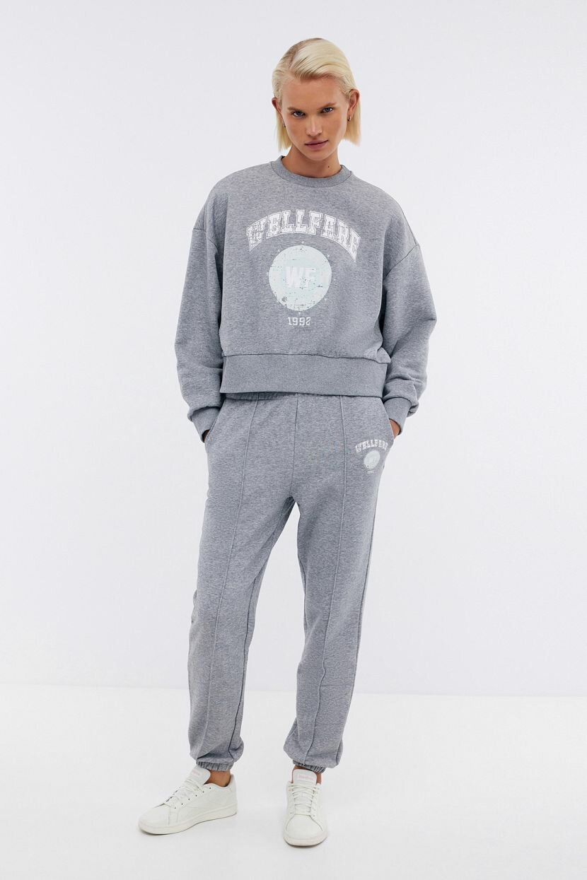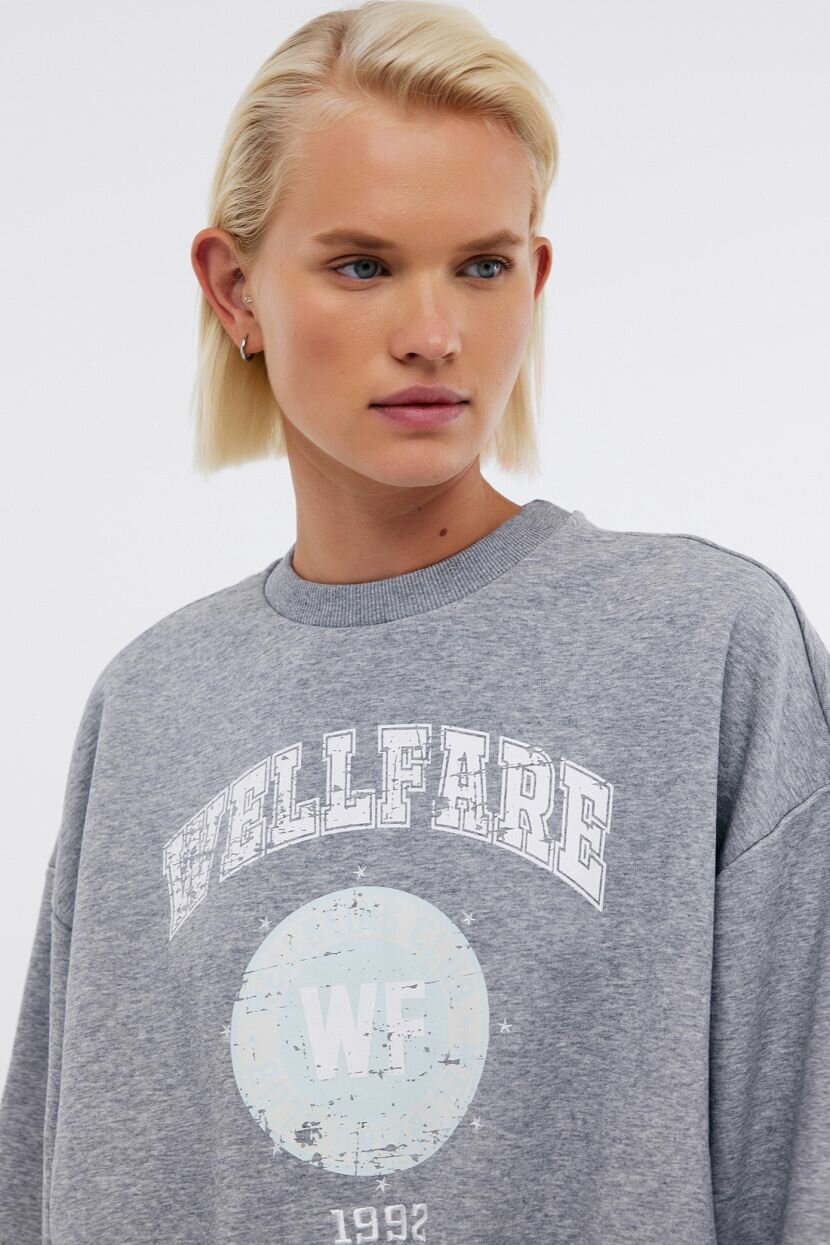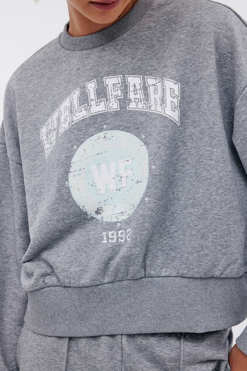 Непринужденный свитшот идеально дополняет спортивные и повседневные образы. Его можно органично внедрить в стильные комплекты с вещами в кэжуал и спорт-шик стиле. Актуальный оверсайз силуэт придает умеренный объем и красиво сидит по фигуре. Модель не сковывает движений и комфортна в носке каждый день. Крой позволяет ощущать свободу и удобство. Укороченная толстовка с круглым вырезом горловины декорирована принтом с вышитыми элементами. Манжеты и резинка, завершающая изделие, комфортно прилегают к телу. Спущенная линия плеча обеспечивает динамичность. Ношение не привязано к конкретному времени года. Хлопковый футер будет комфортен в любой сезон. Материал обладает дышащими свойствами и приятен на ощупь. Полиэстер в составе отвечает за сохранение привлекательного внешнего вида без деформации и пилинга.