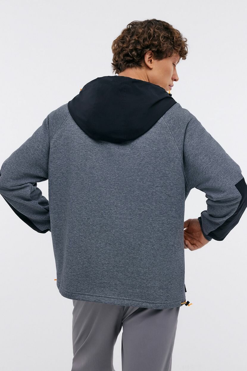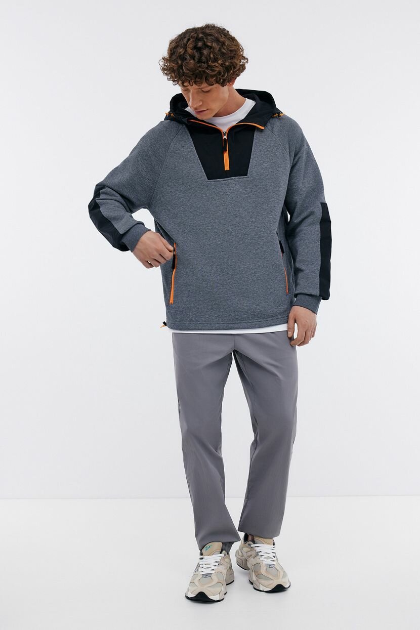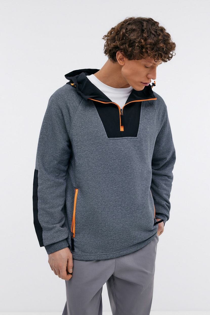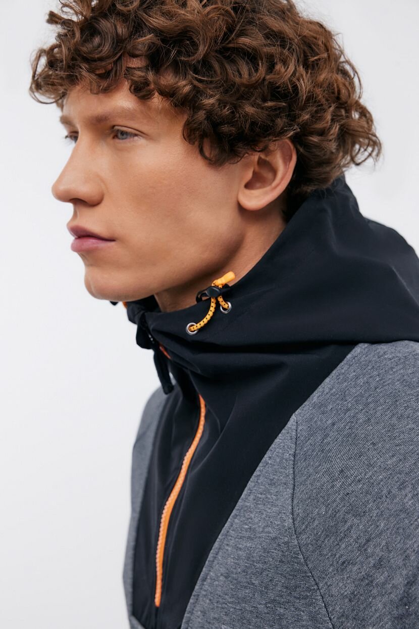 Комбинированная толстовка - неординарная модель с декоративными контрастными элементами заслуживает стать базой кэжуал гардероба. В повседневных и спортивных образах такая основа станет залогом комфорта. Худи подойдет для тех, кто не представляет жизнь без активного движения и путешествий. Микс с плащевым материалом придает брутальности и оригинальности. Минималистичная брендированная вышивка на левой полочке груди служит декором. Капюшон регулируется по объему, что обеспечивает оптимальное прилегание и надежную защиту от ветра. Карман закрывается на молнию, что позволяет не потерять содержимое при активном движении. Утяжка по низу дает возможность эффективно сохранить тепло. Кофта выполнена из хлопкового футера без начеса. Натуральный трикотаж теплый и тактильно приятный. Он обладает гладкой фактурой и не деформируется после стирки благодаря полиэстеру.