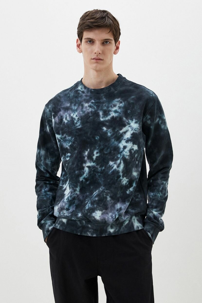 Комфортный и стильный свитшот - мастхэв повседневного гардероба. Сочетание лаконичного дизайна и эффектной расцветки в технике тай-дай не позволит вам остаться незамеченным. Модель имеет прямой крой со спущенной линией пройм. Нижняя часть изделия, воротник и манжеты выполнены из трикотажной резинки-рибана. Толстовку можно сочетать как со спортивными брюками, так и с джинсами.Модель выполнена из трикотажа-футера с петельчатой внутренней поверхностью, которая помогает поддерживать комфортную температуру тела. В составе только натуральный хлопок - дышащий, мягкий и гипоаллергенный. Мы используем длинноволокнистый хлопок, чтобы создать более прочное и ровное трикотажное полотно с меньшим количеством ворсинок (качество пенье).