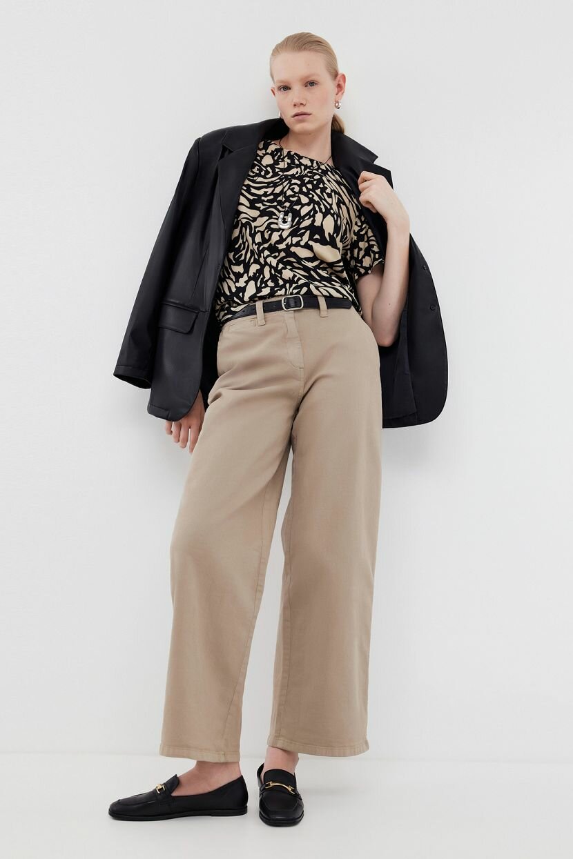 Широкие джинсы - просторная модель, которая занимает трендовые позиции. Ее легко интегрировать в женский гардероб на каждый день. Брюки гармонично смотрятся в кэжуал аутфитах и актуальны для любой ситуации благодаря универсальному цветовому решению. Их крой не сковывает движений и дарит ощущение безграничной свободы. Силуэт подчеркивает контуры и деликатно нивелирует недостатки. Дизайн дополнен функциональными карманами в стиле чинос и брендированной фурнитурой. Изделие выполнено из плотного хлопкового денима с добавлением эластана. Гладкая приятная к телу фактура и дышащие свойства обеспечивают абсолютный комфорт при ношении. Синтетические волокна повышают износостойкость. Специальная обработка придает винтажный эффект.