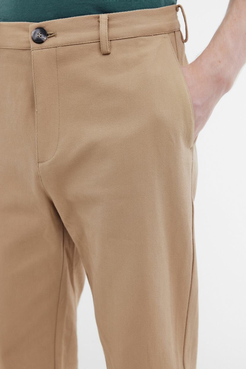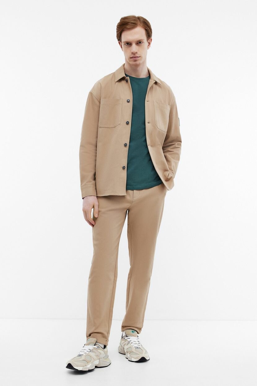 Чинос - трендовая разновидность классических брюк. Мужские однотонные брюки с отворотами отличаются от классики более низкой посадкой. Они универсальны для составления стильных образов. Подойдут как на каждый день, так и для торжественного мероприятия. Выглядят сдержанно и при этом гармонично дополняют аутфиты для офиса. Модель с зауженным к низу силуэтом обладает передними боковыми карманами и прорезными сзади. Пояс застегивается на пуговицу. Предусмотрены шлевки. Изделие выполнено из плотного хлопкового полотна с диагональным переплетением нитей, что придает фактуре матовость. Натуральный хлопок пропускает воздух к коже, что обеспечивает комфортную терморегуляцию в любой сезон. Материал устойчив к деформации, что дает возможность сохранять безупречный внешний вид долгое время.