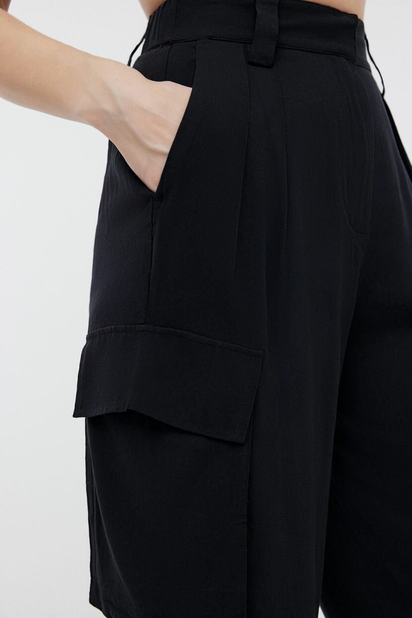 Брюки женские могут служить классическим офисным решением или дополнять расслабленные повседневные аутфиты. Их интеграция в образы максимально разнообразна, как и возможность стилизации. Несмотря на армейские истоки однотонная модель карго достаточно женственная и элегантная. Она поможет проявить индивидуальность и станет яркой основой лука на каждый день для прогулок или деловых встреч. К ключевым достоинствам стоит отнести удобство движений. Предусмотрены накладные и боковые вместительные карманы. Декоративные вытачки внизу брючин являются интересным акцентом. Изделие застегивается на потайной крючок. Оно выполнено из легкого материала, который объединил лен и вискозу. Характерная приятная к телу фактура комфортна. Дышащие свойства обеспечивают оптимальную терморегуляцию.