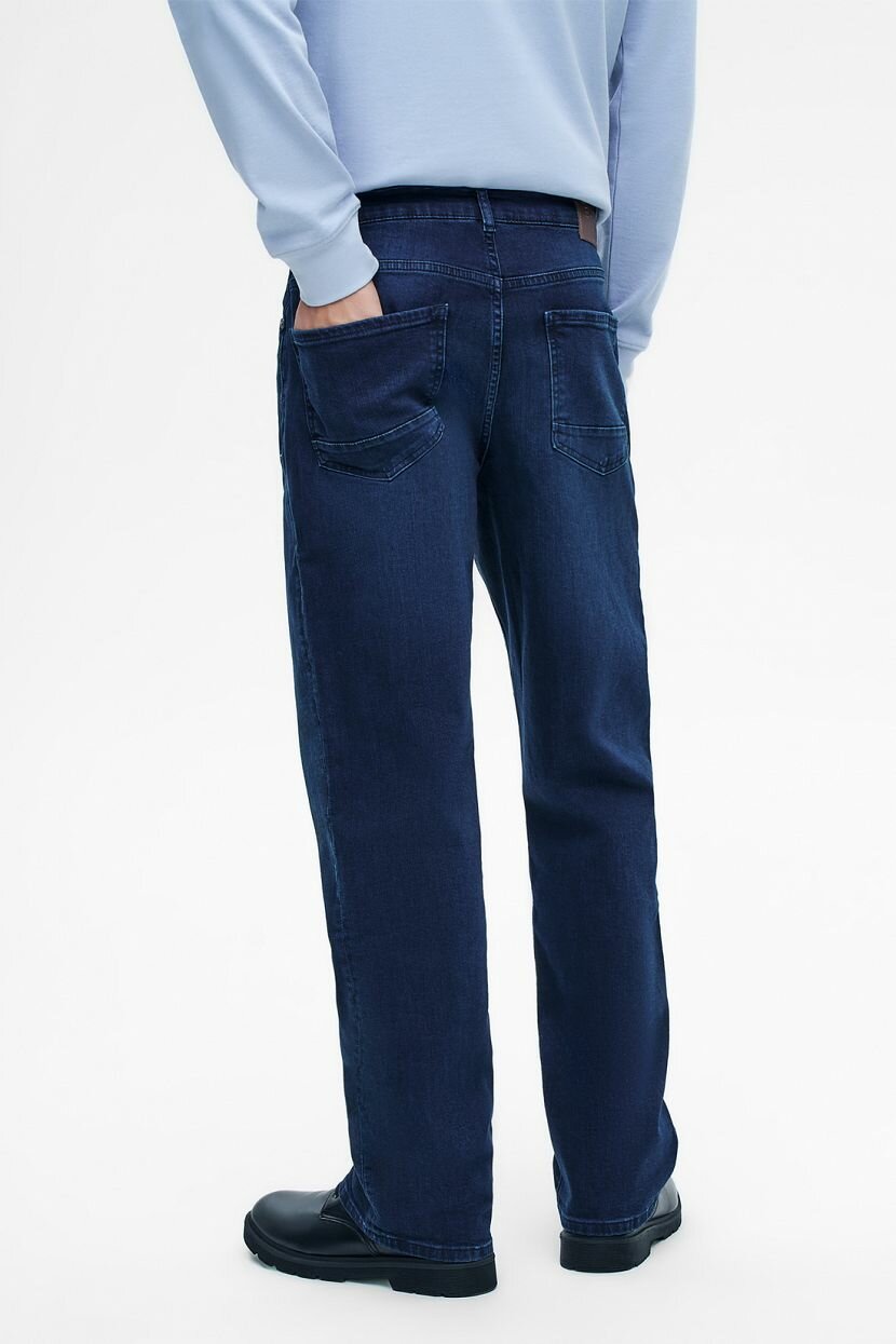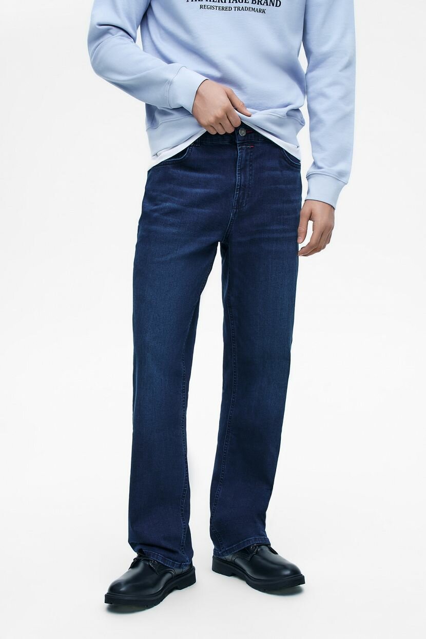 Универсальные джинсы в классическом силуэте REGULAR FIT - мастхэв повседневного гардероба. Такая модель подходит всем без исключения, а лаконичный дизайн позволяет использовать её в различных версиях стиля casual - от sport до smart. Средняя по высоте посадка обеспечивает комфорт движения. Джинсы имеют классический пятикарманный крой с застёжкой на молнию и фирменную пуговицу-болт. Передние карманы дополнительно усилены металлическими клёпками. Пояс дополнен шлёвками для ремня. Джинсы выполнены из плотного денима тёмно-синего цвета с винтажной обработкой поверхности. В составе натуральный хлопок - дышащий, мягкий и гипоаллергенный. Небольшое содержание эластана повышает износостойкость изделия и заботится о сохранности его формы в процессе носки.